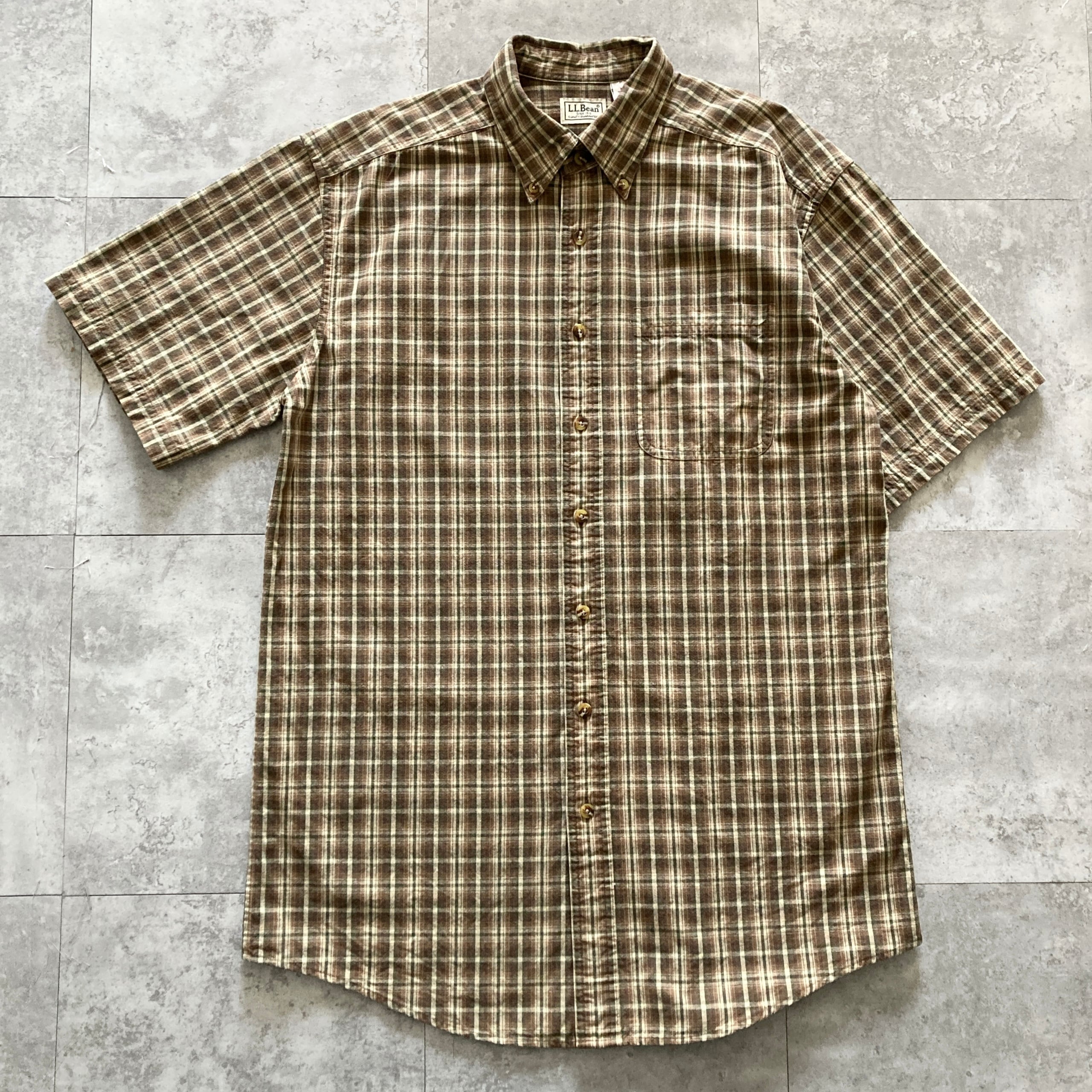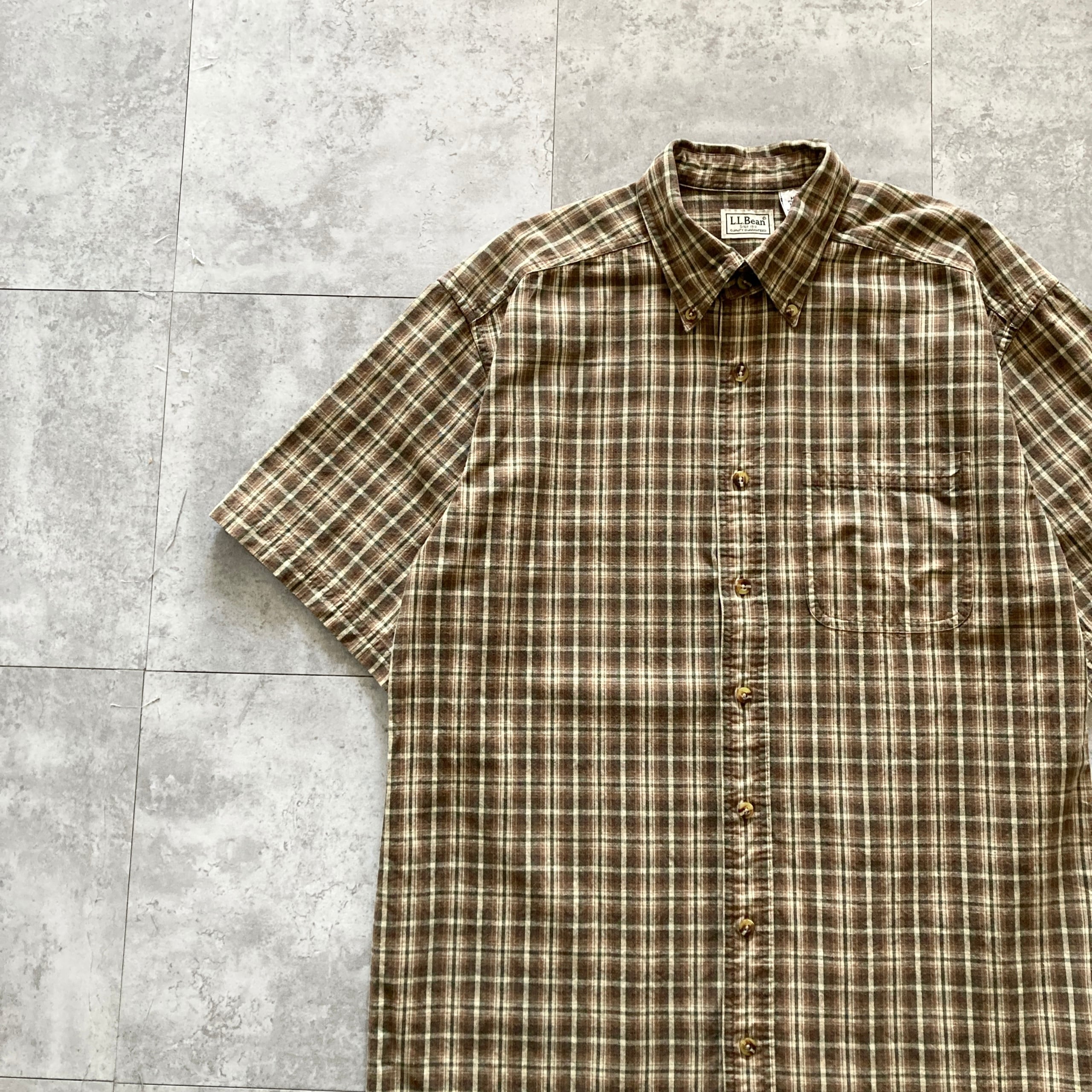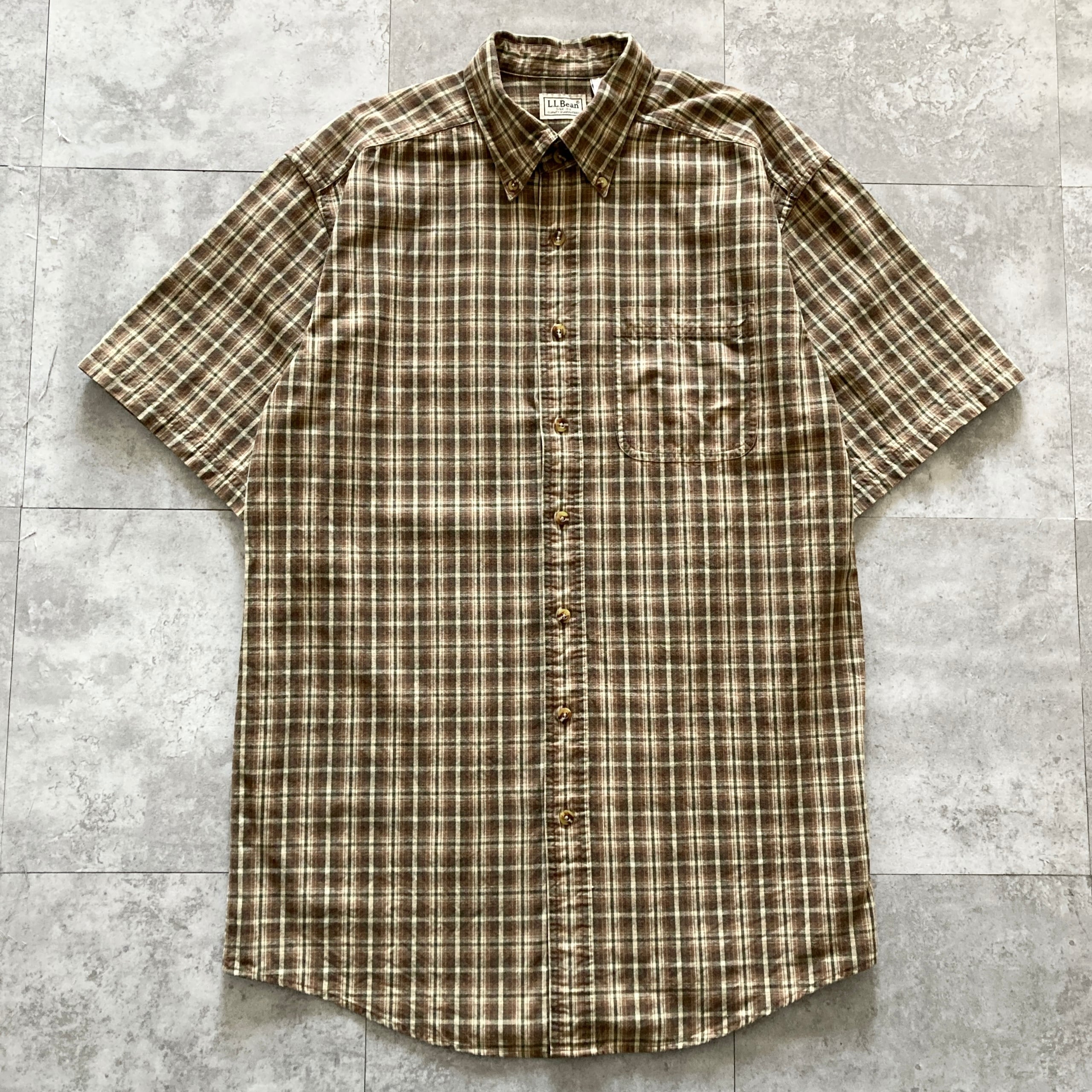 【90s-00s】L.L.Bean エルエルビーン 表記M 胸ポケット チェック柄 半袖 シャツ