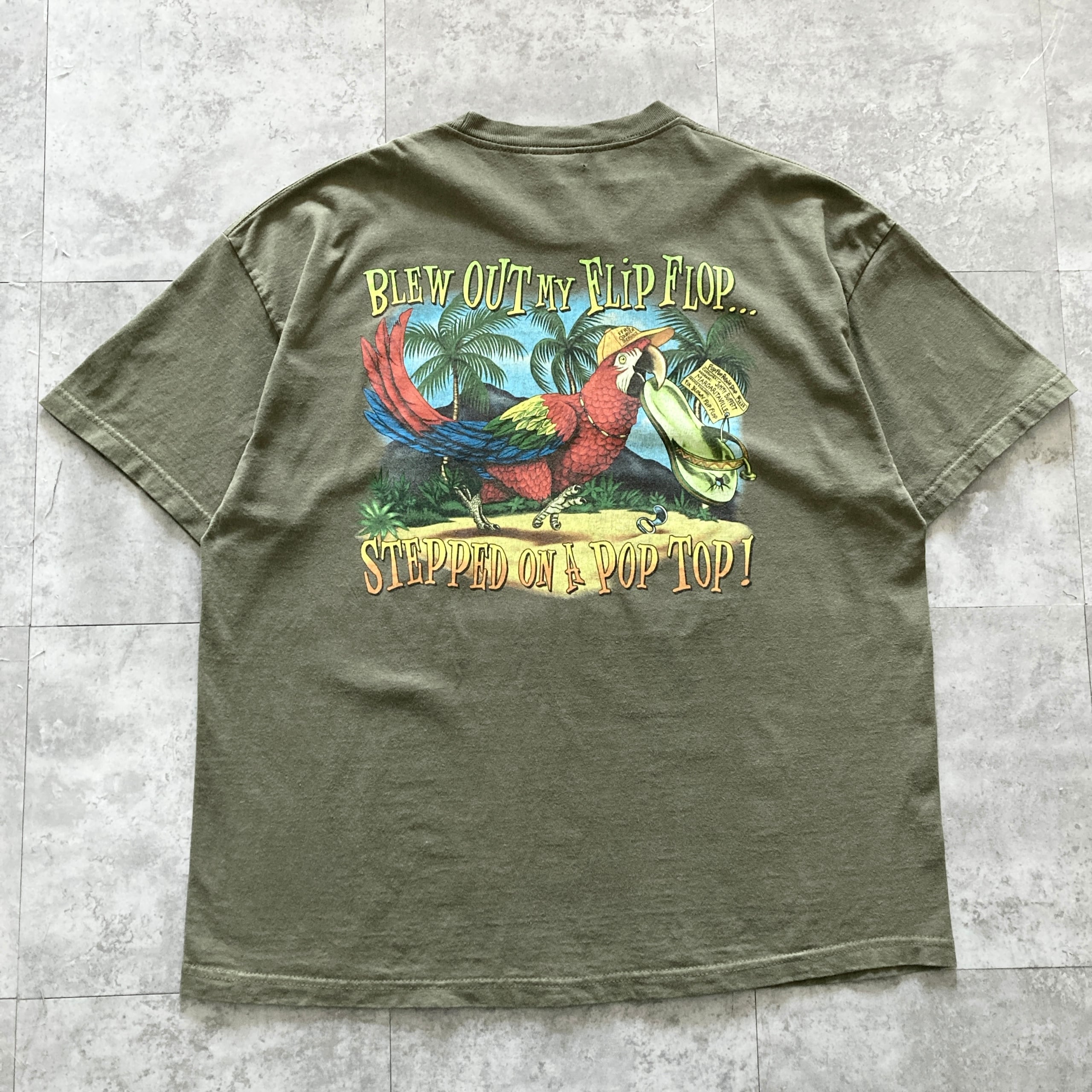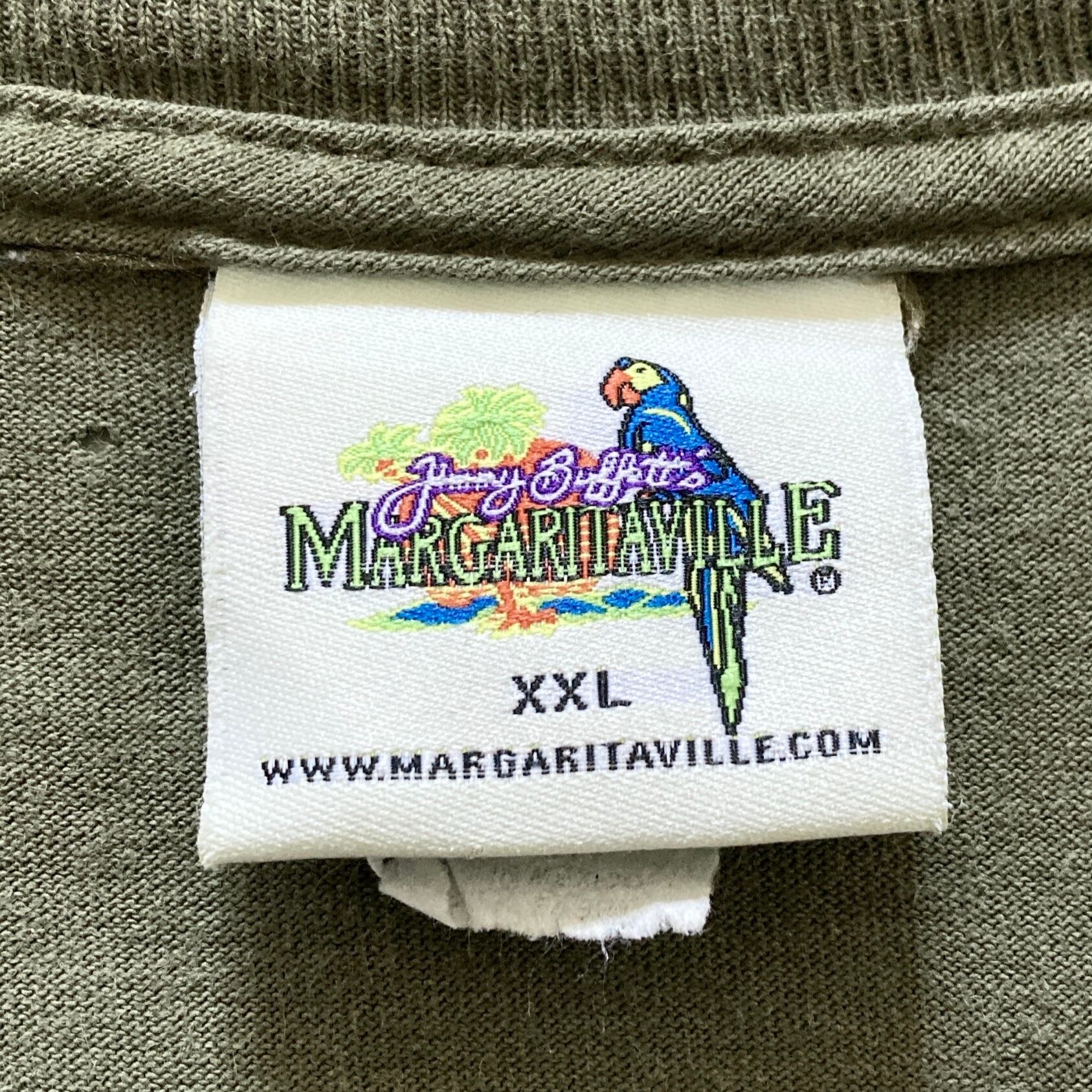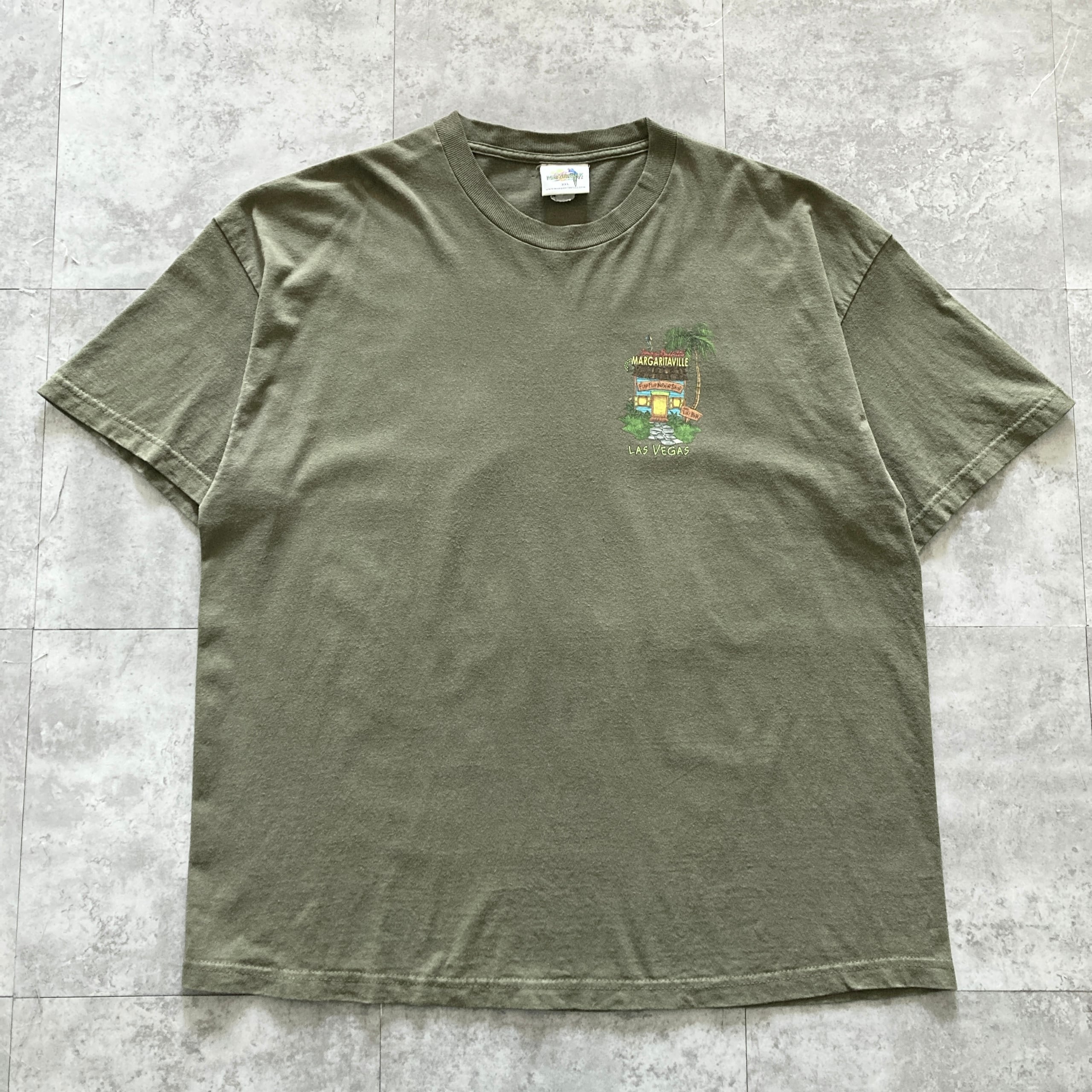 【Size.XXL】00s Jimmy Buffett's MARGARITAVILLE ジミーバフェットマーガリタヴィル 両面プリント LAS VEGAS オウム インコ カーキ Tシャツ