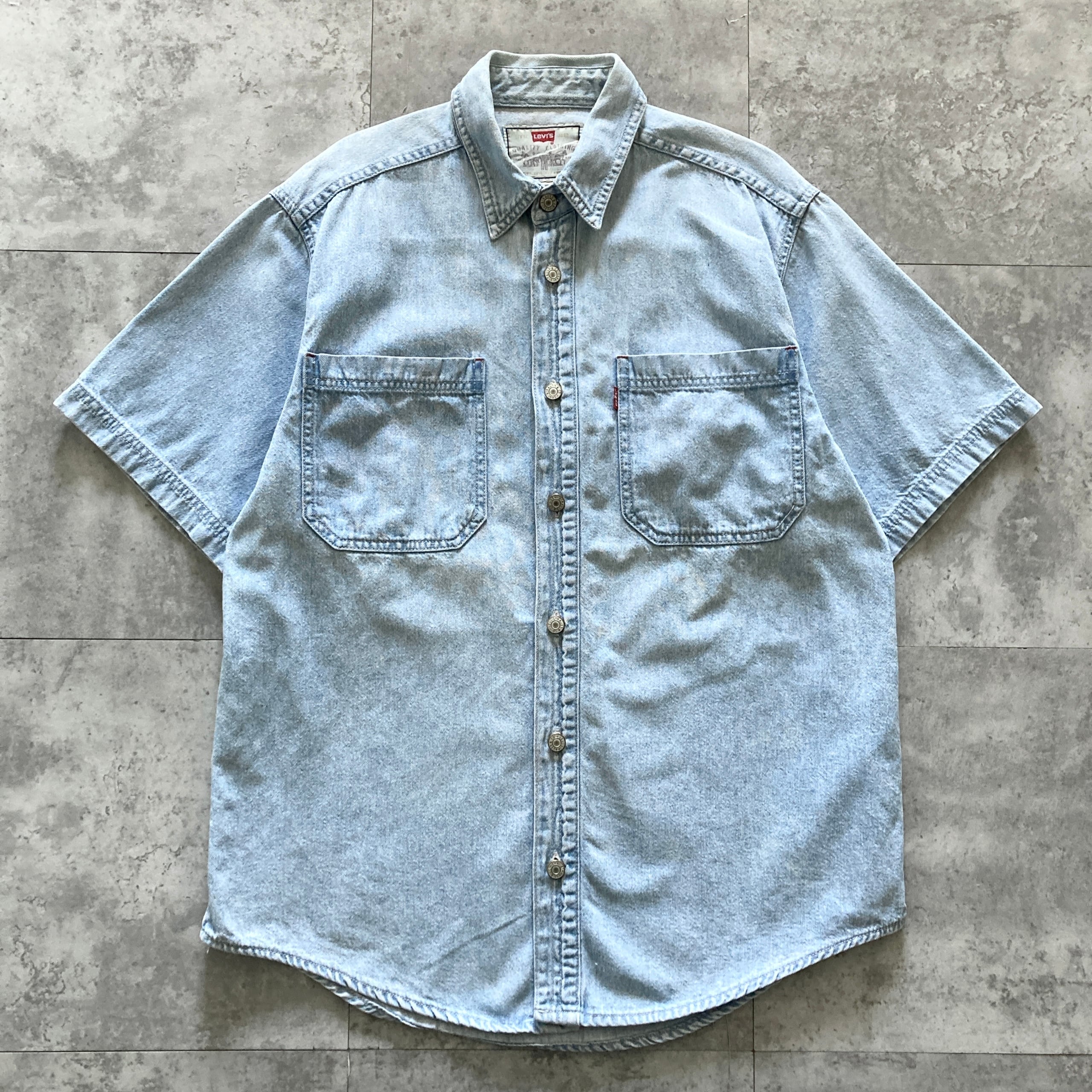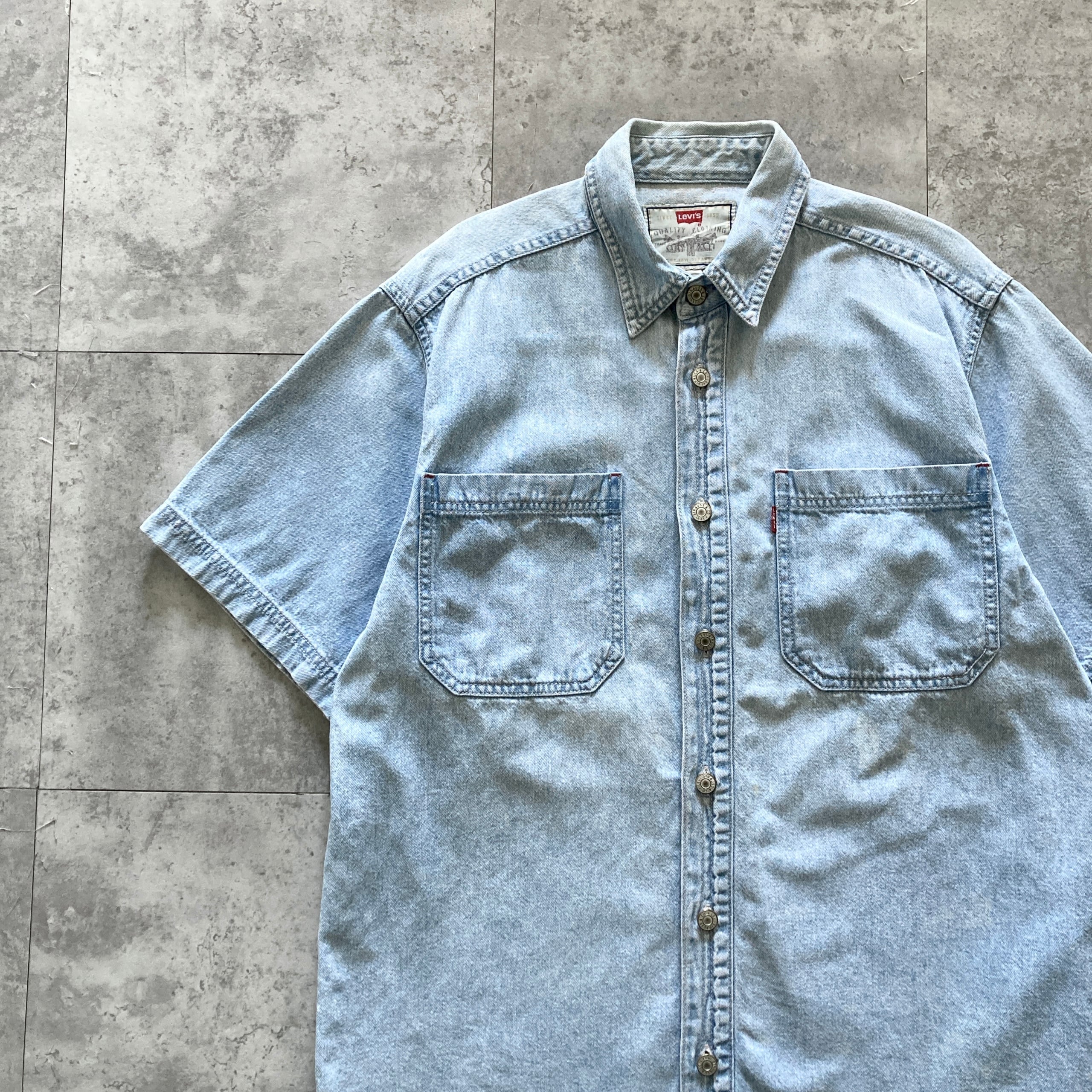 【90s】Levi's リーバイス 表記L16-18 90年代製 メタルボタン ダブルポケット 半袖 デニムシャツ