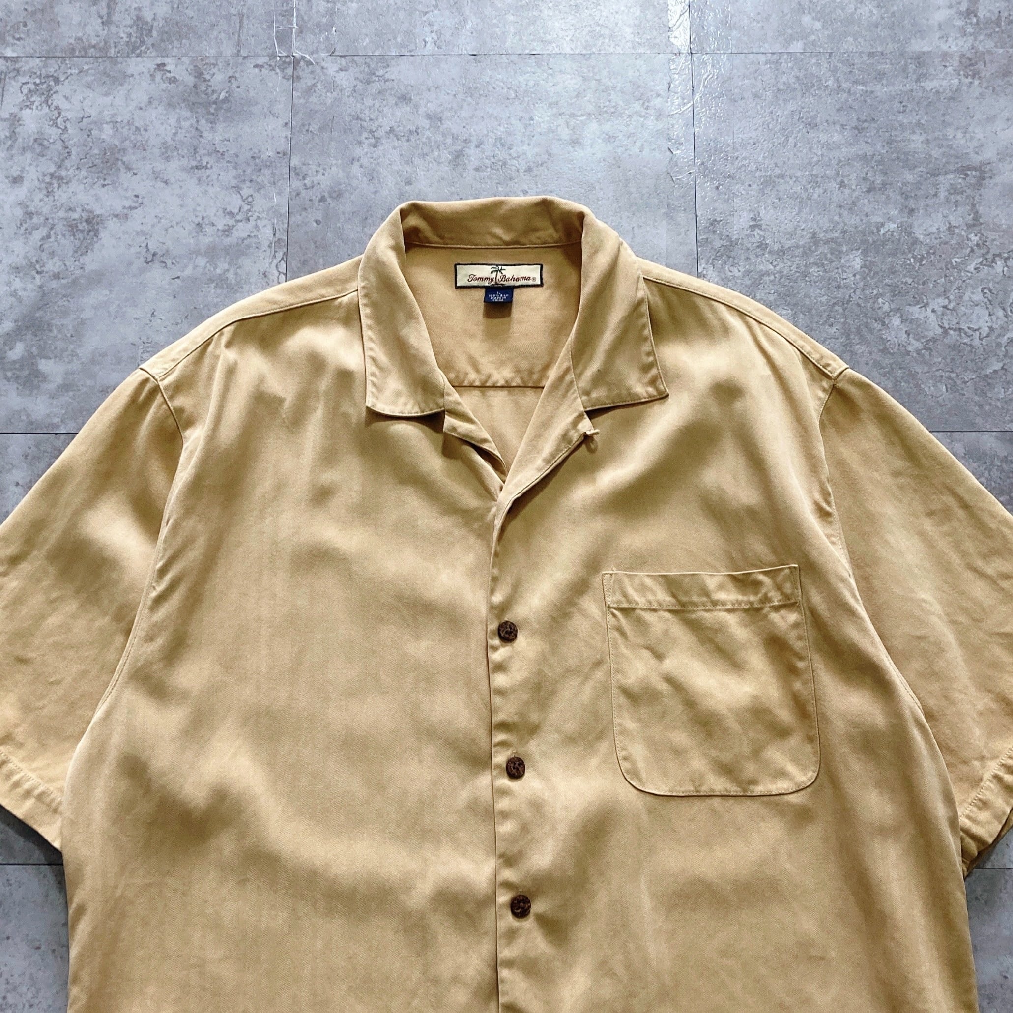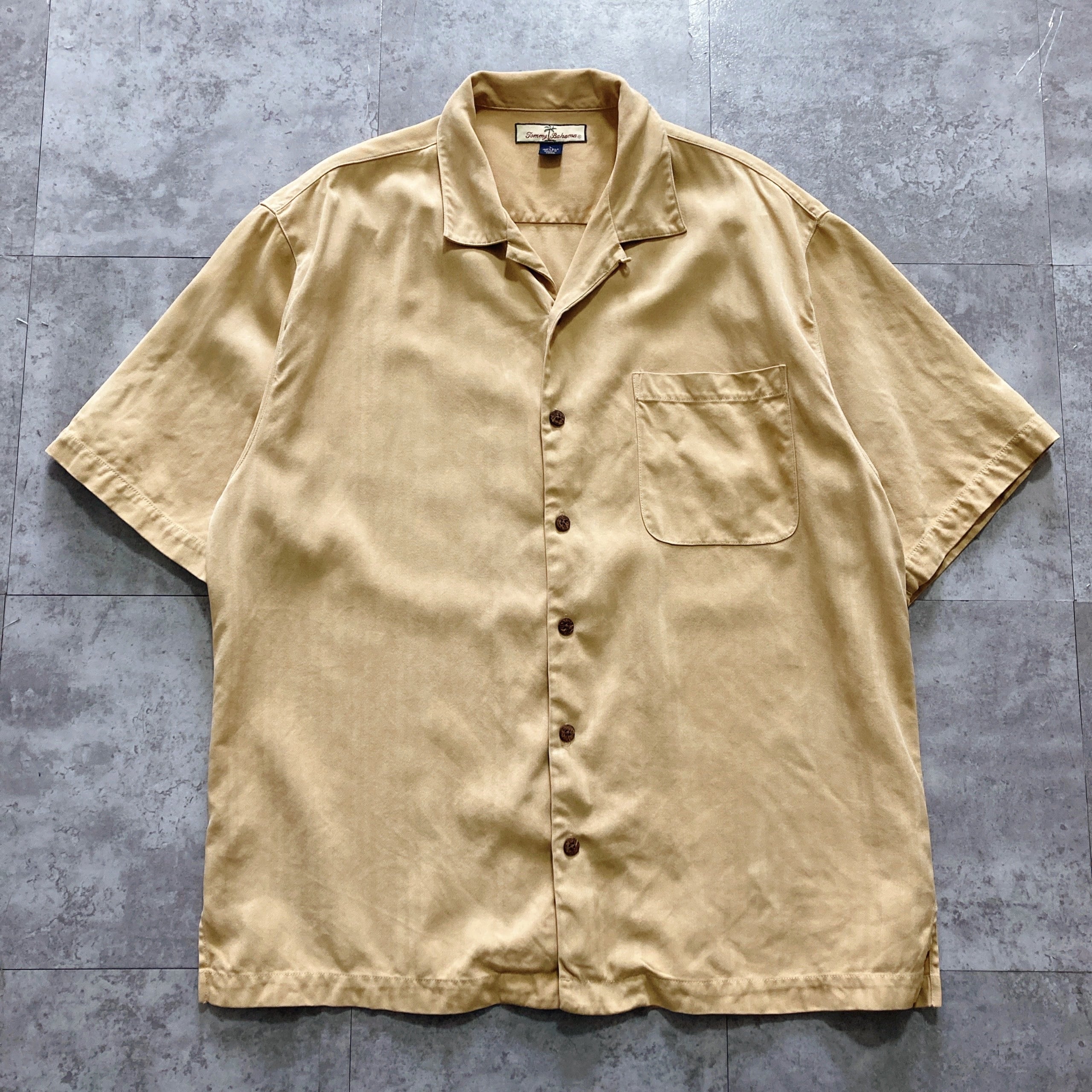 【Size.L】Tommy Bahama トミーバハマ シルク100% 無地 開襟シャツ オープンカラーシャツ アロハシャツ