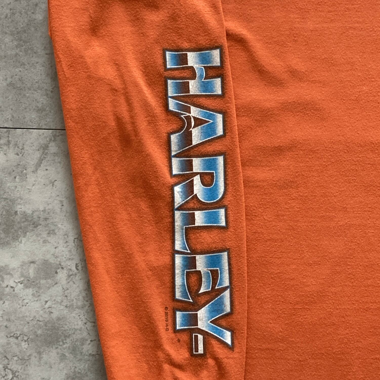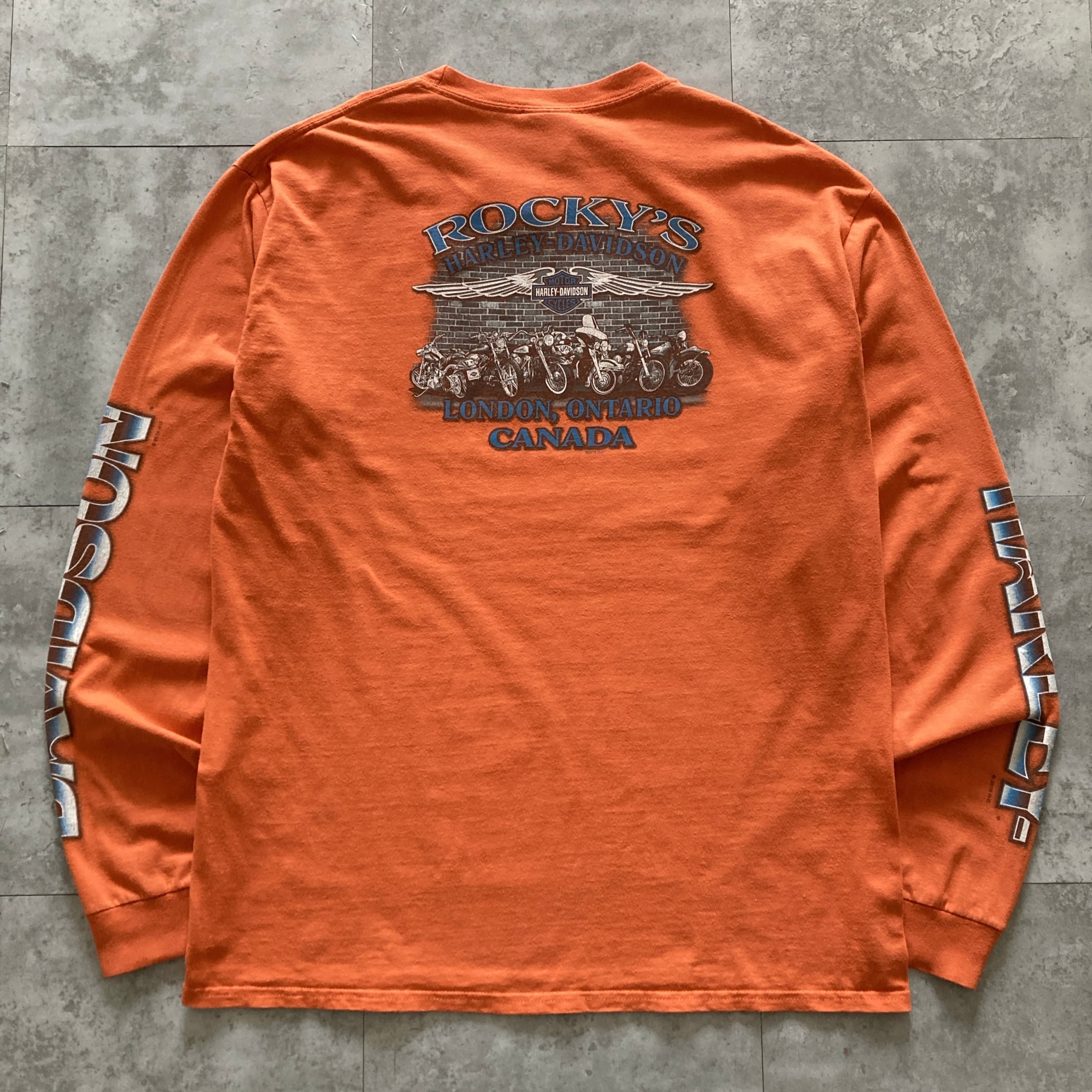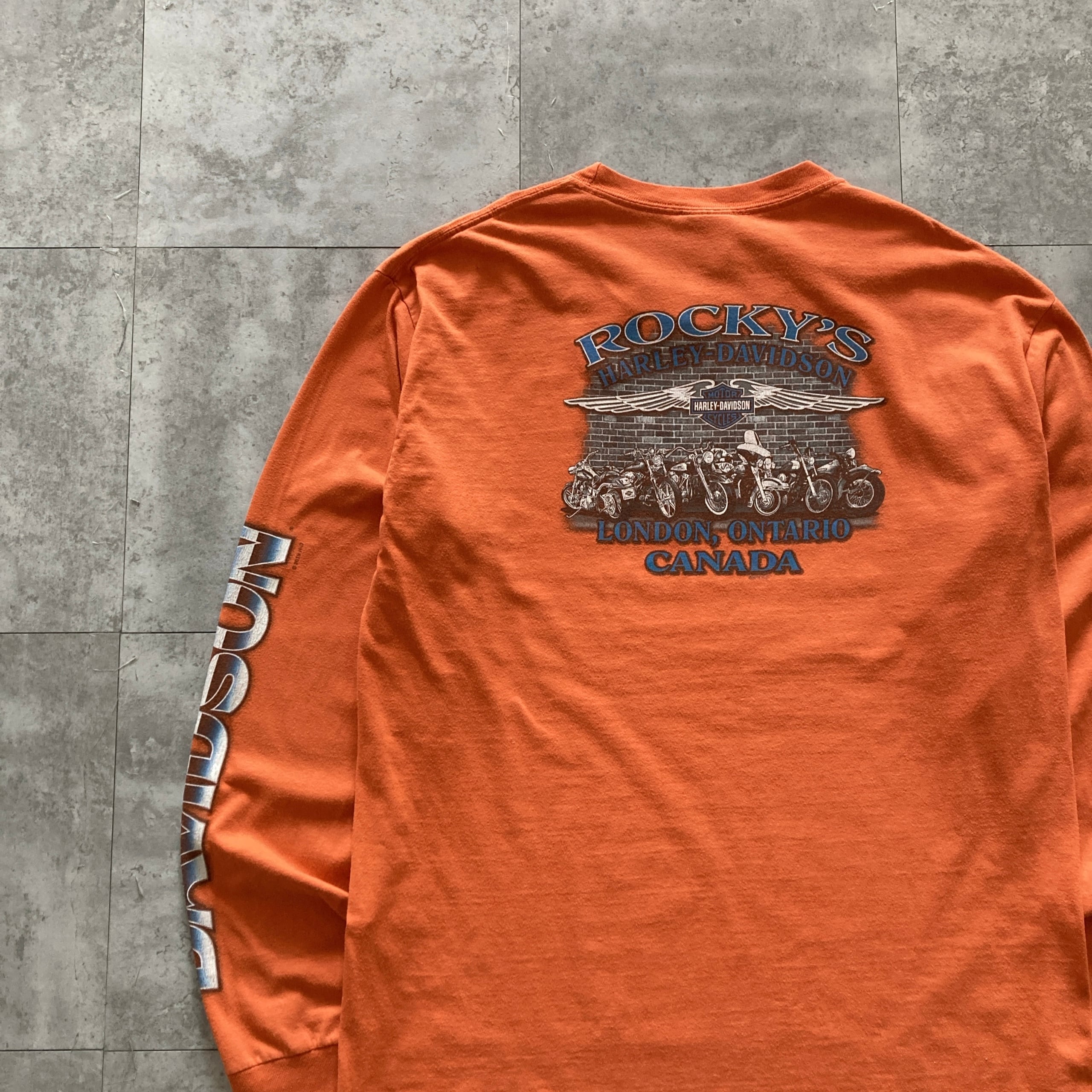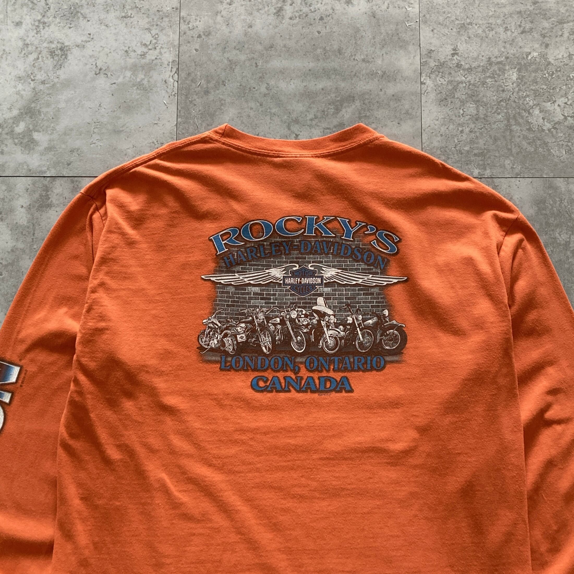 【Size.L】ハーレーダビッドソン HARLEY-DAVIDSON 両面プリント センターロゴ スリーブロゴ バックプリント バイク ロンT カットソー