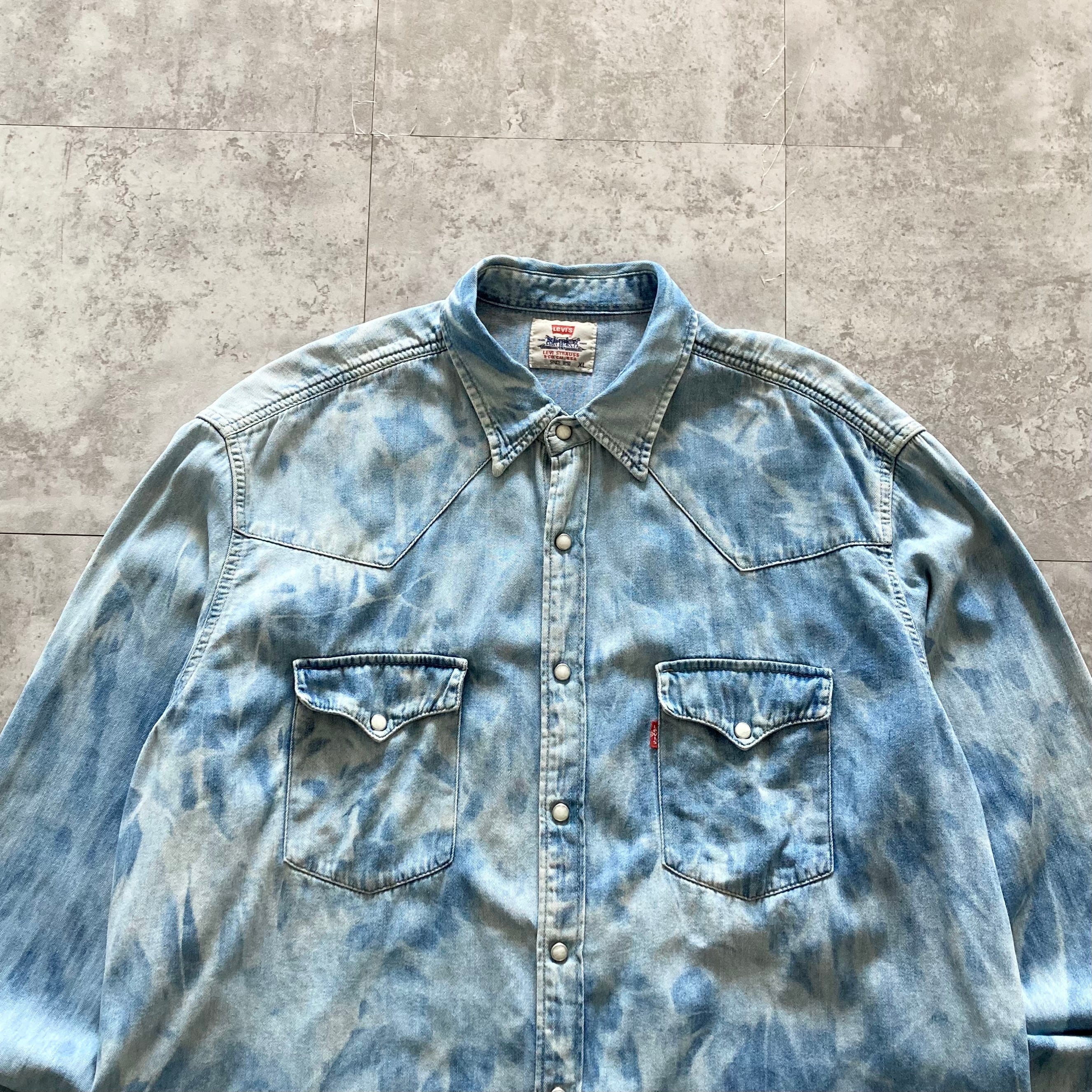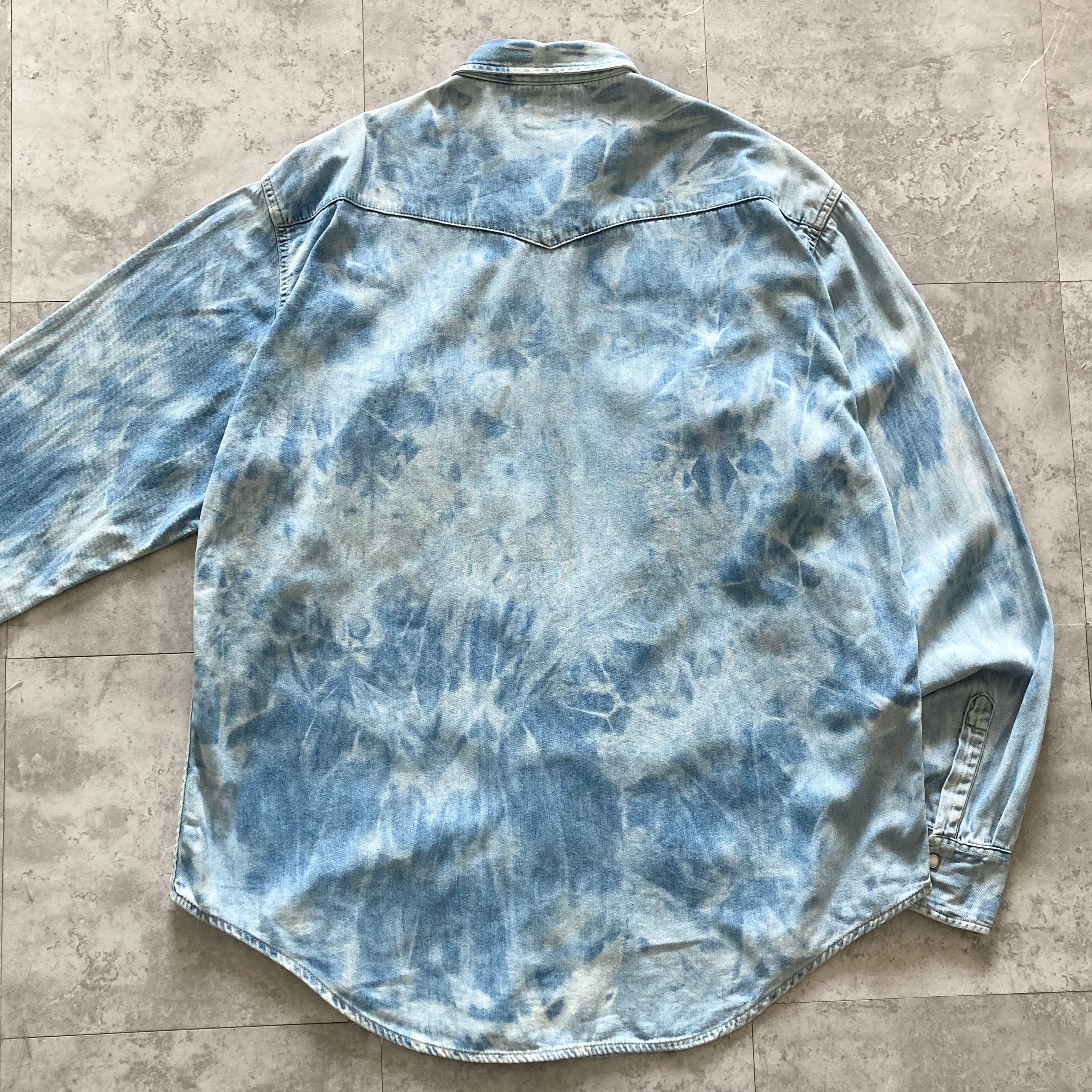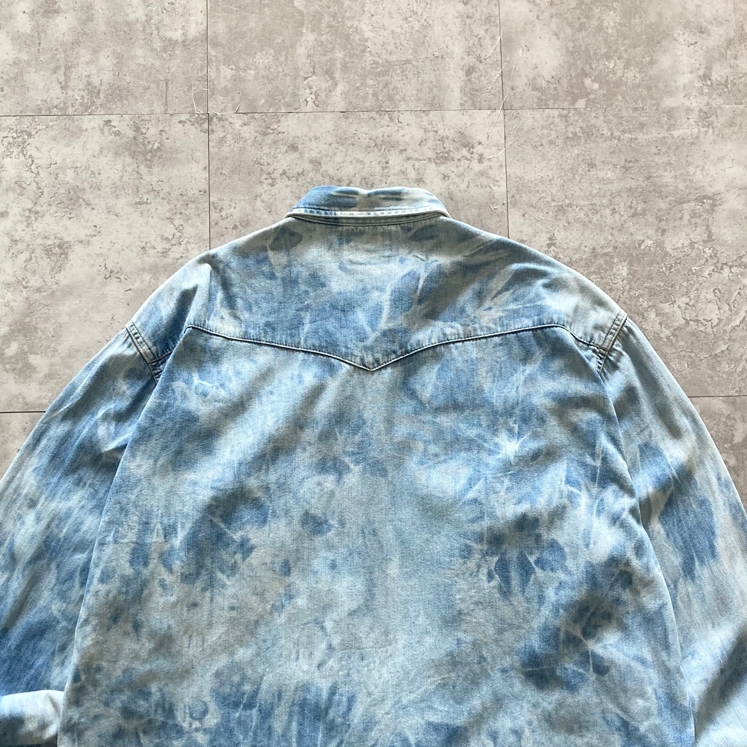 【90s】Euro Levi's ユーロリーバイス 97年製 表記XL チュニジア製 スナップボタン ダブルポケット タイダイ柄 ウエスタンシャツ デニムシャツ