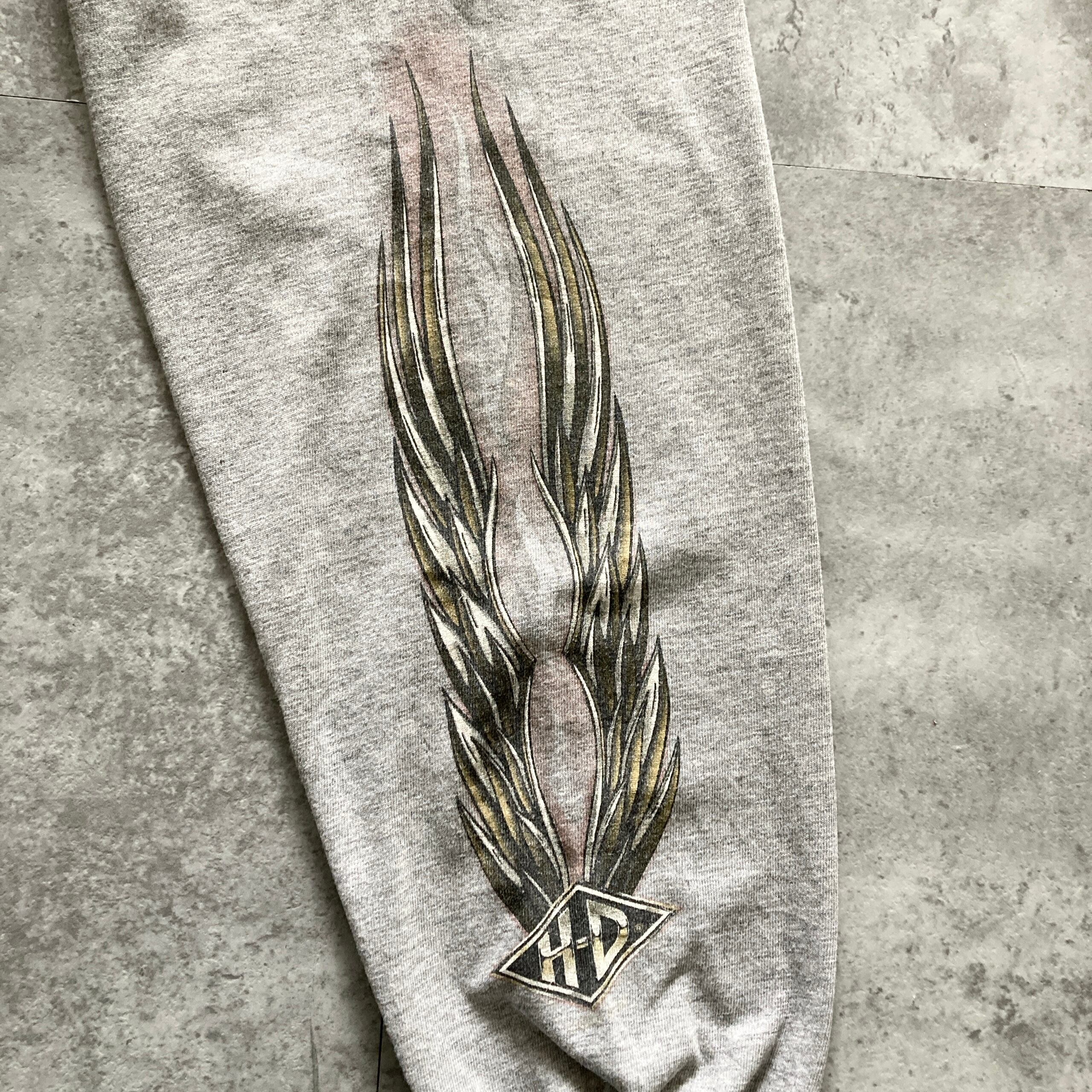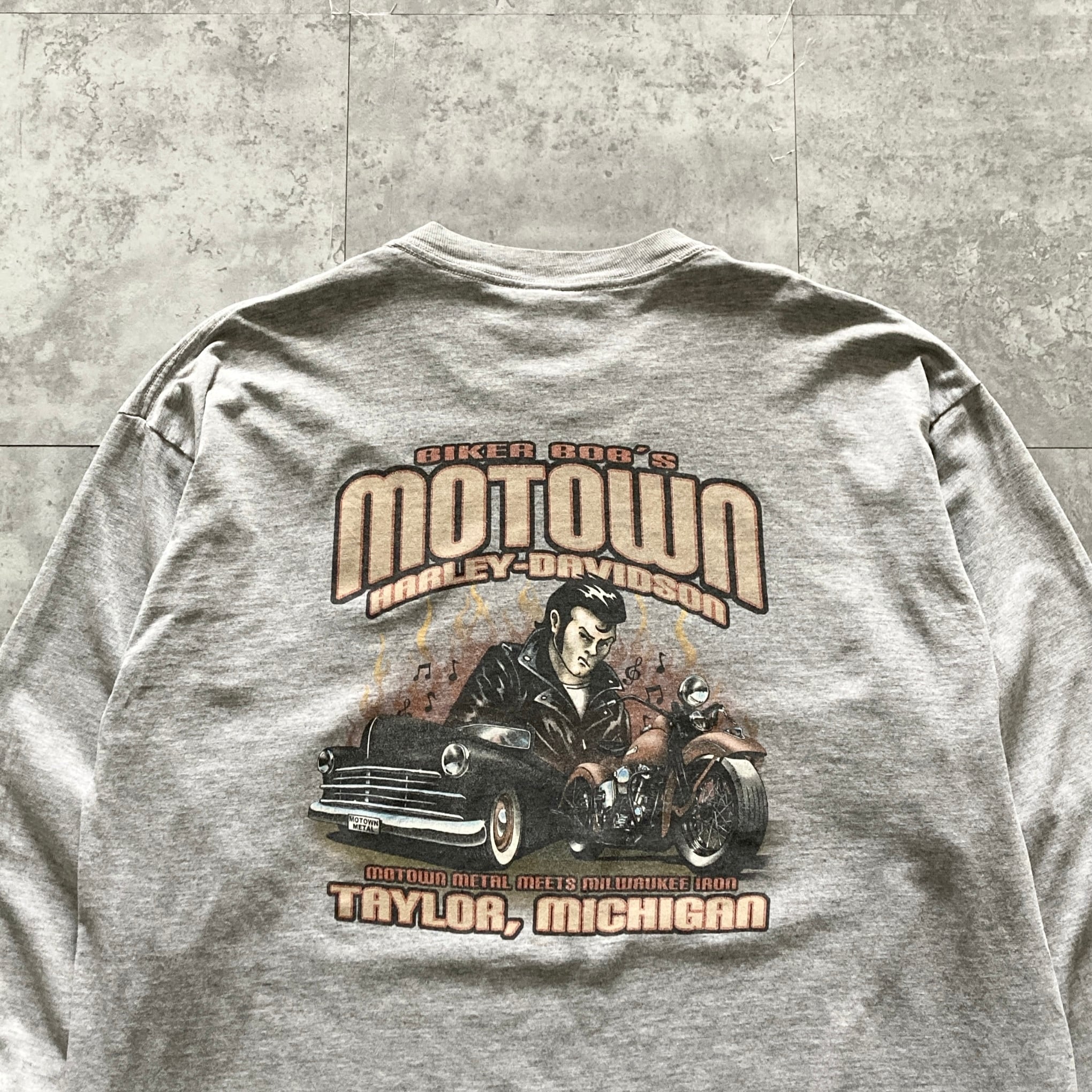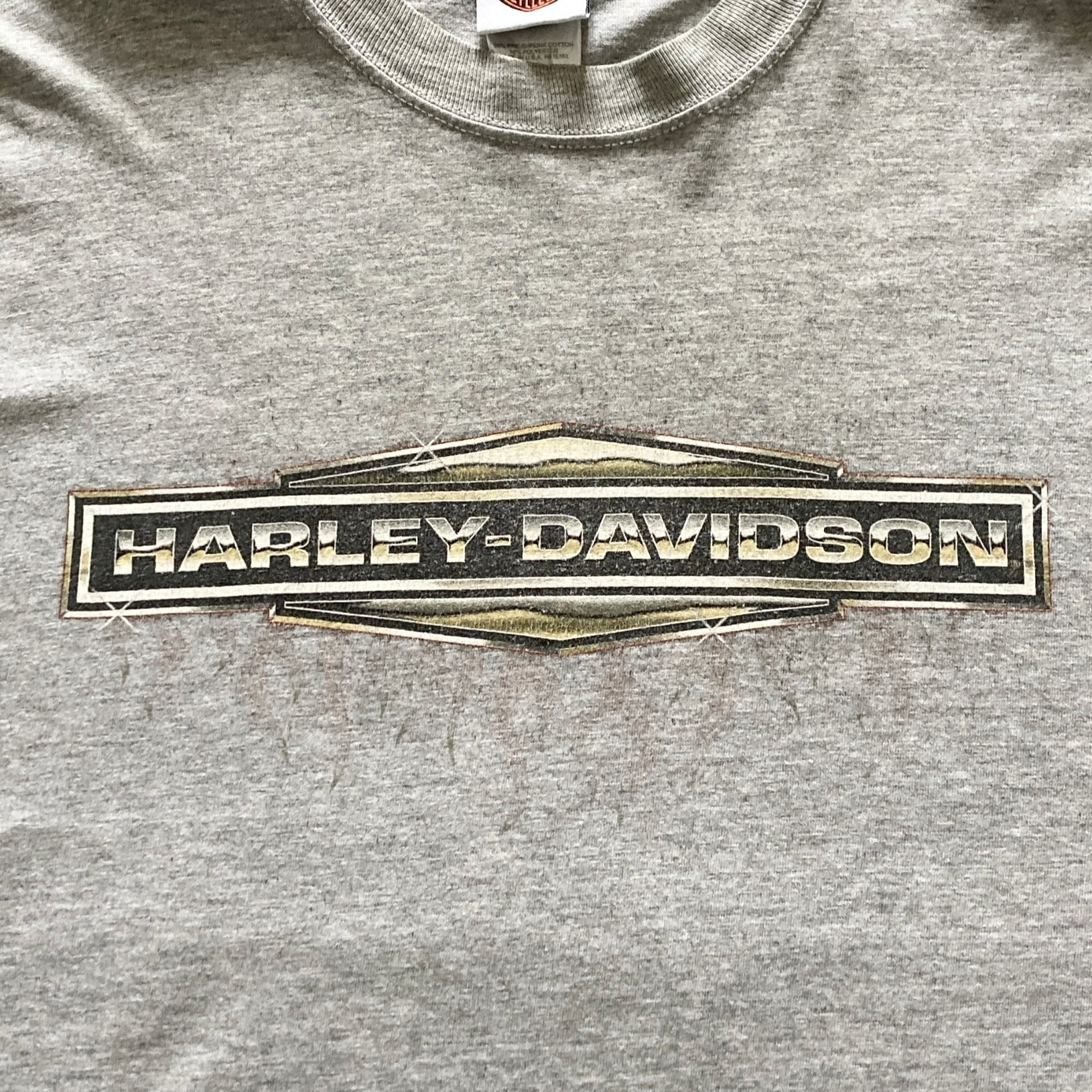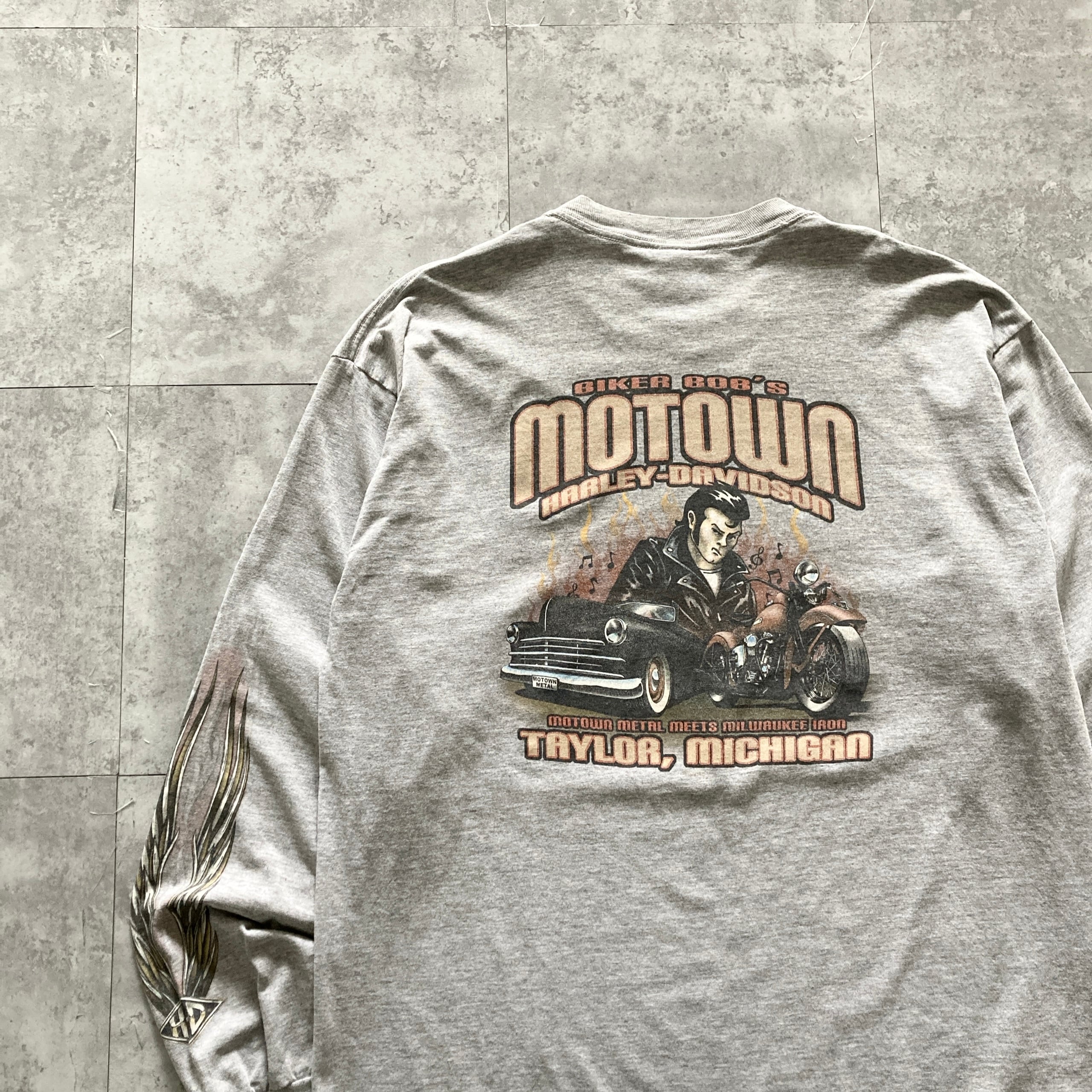 【USA製】ハーレーダビッドソン HARLEY-DAVIDSON 表記XL アメリカ製 両面プリント センターロゴ バックプリント スリーブロゴ バイク レトロカー リーゼント ロンT カットソー