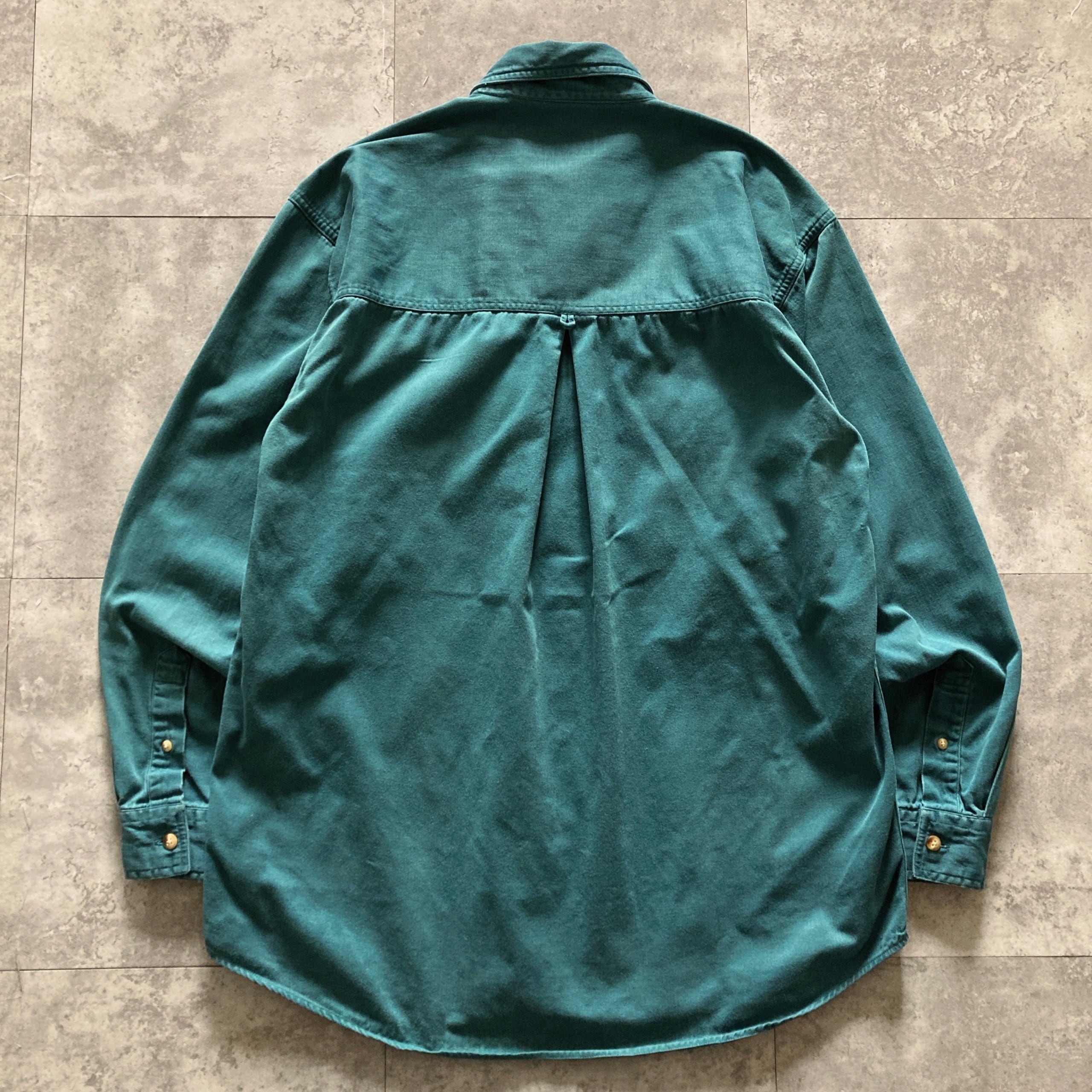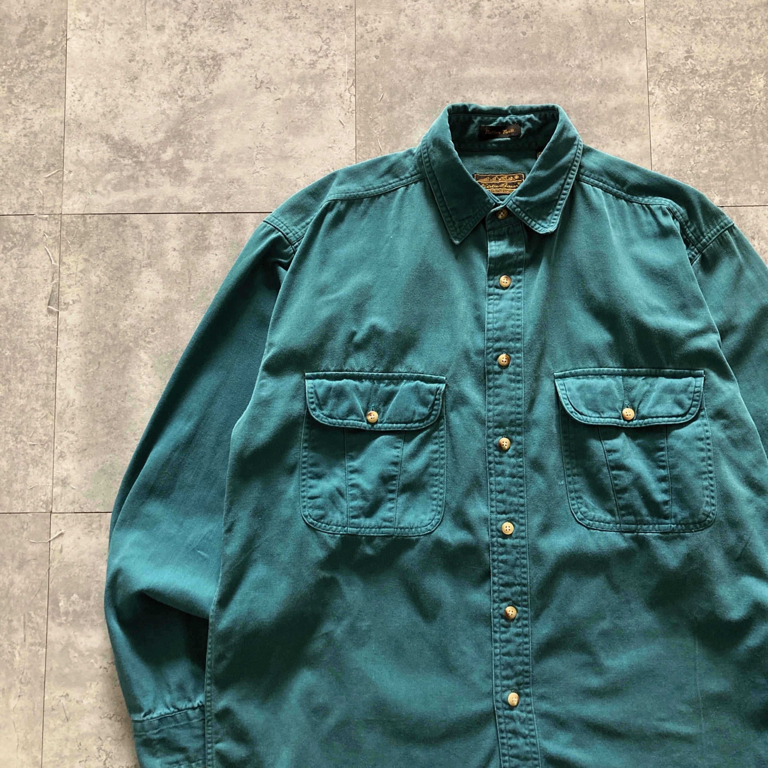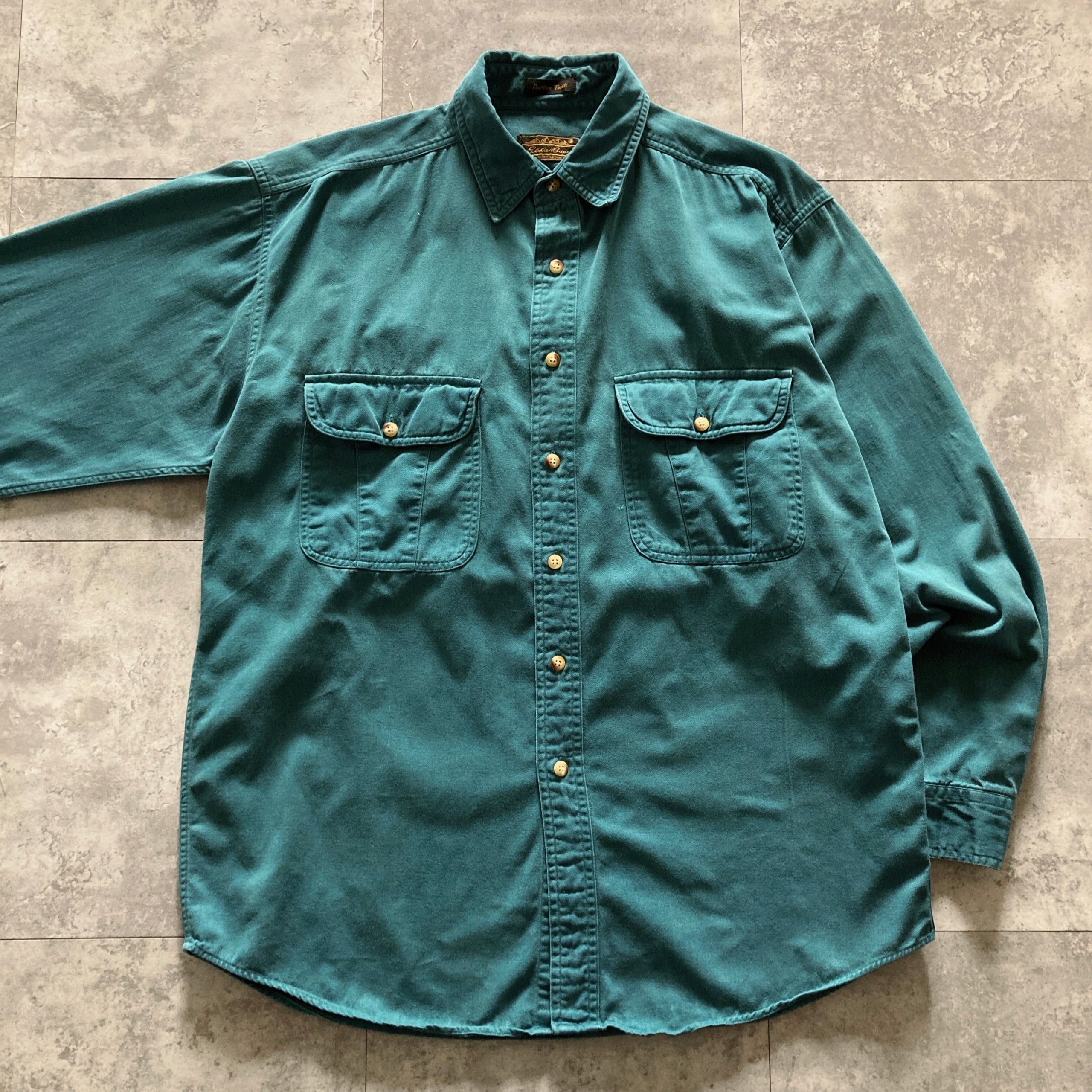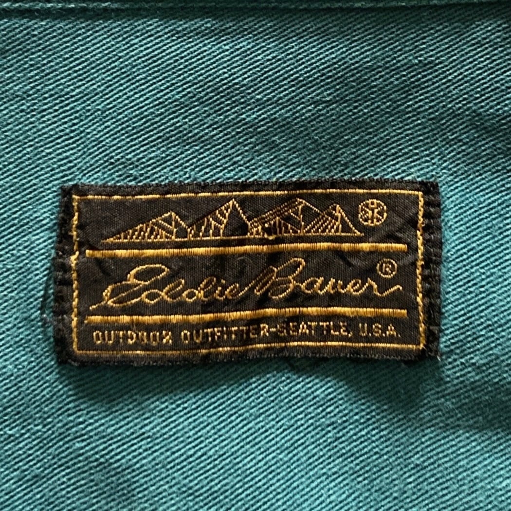 【80s-90s】Eddie Bauer エディーバウアー 黒タグ 表記M エメラルドグリーン シャツ