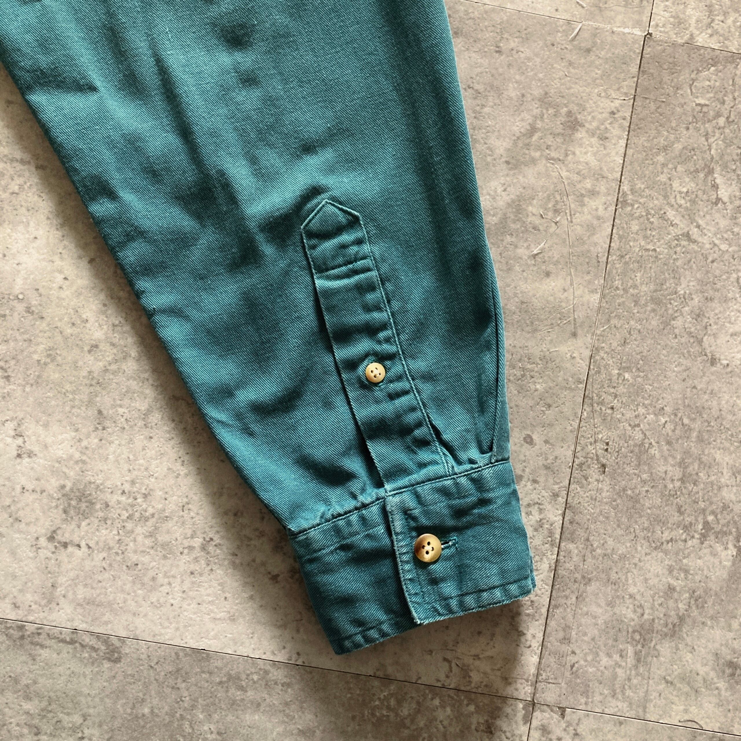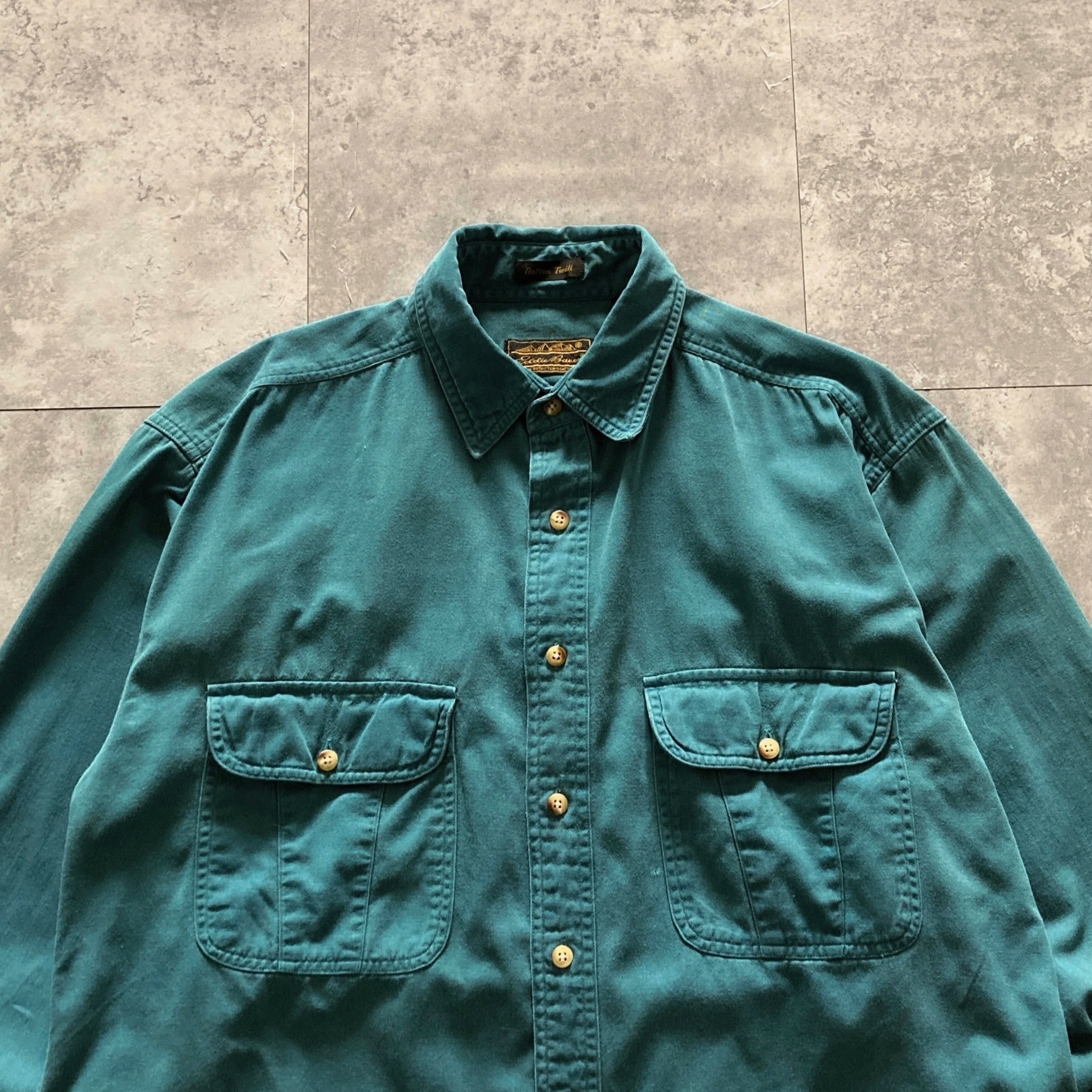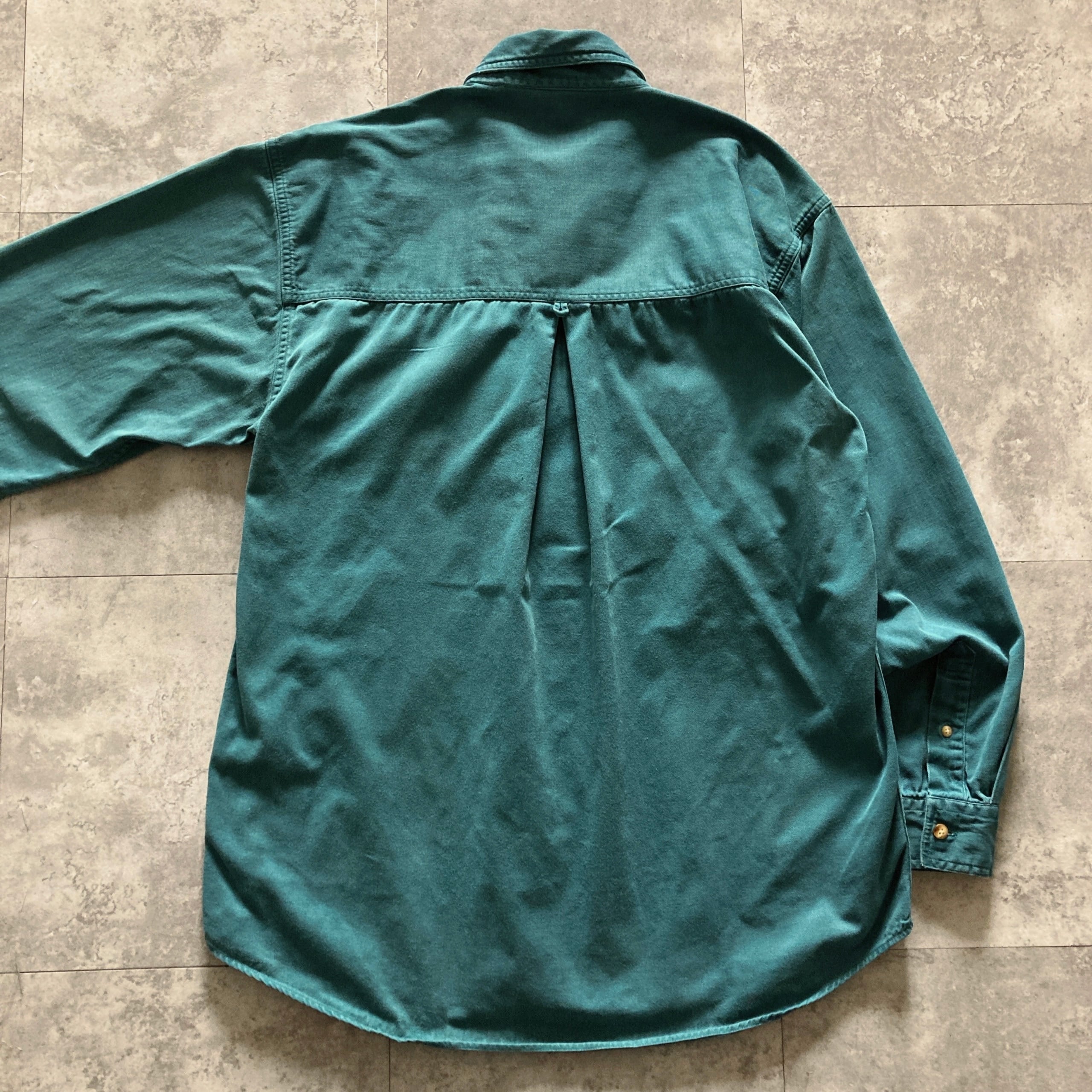 【80s-90s】Eddie Bauer エディーバウアー 黒タグ 表記M エメラルドグリーン シャツ