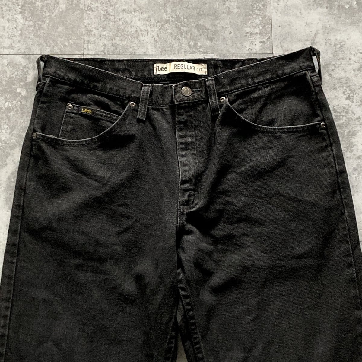 【W34 L32】Lee regular fit リー ジッパーフライ レザーパッチ ブラックデニム ジーンズ