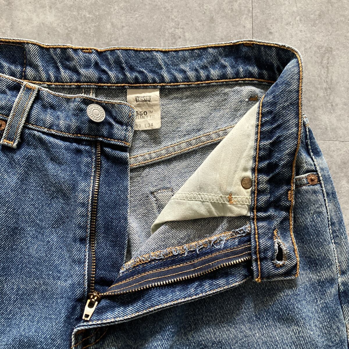 【W30 L34】90's Levis RELAXED FIT 550 リーバイス ジッパーフライ ワイド テーパード 縦落ち デニムパンツ ジーンズ