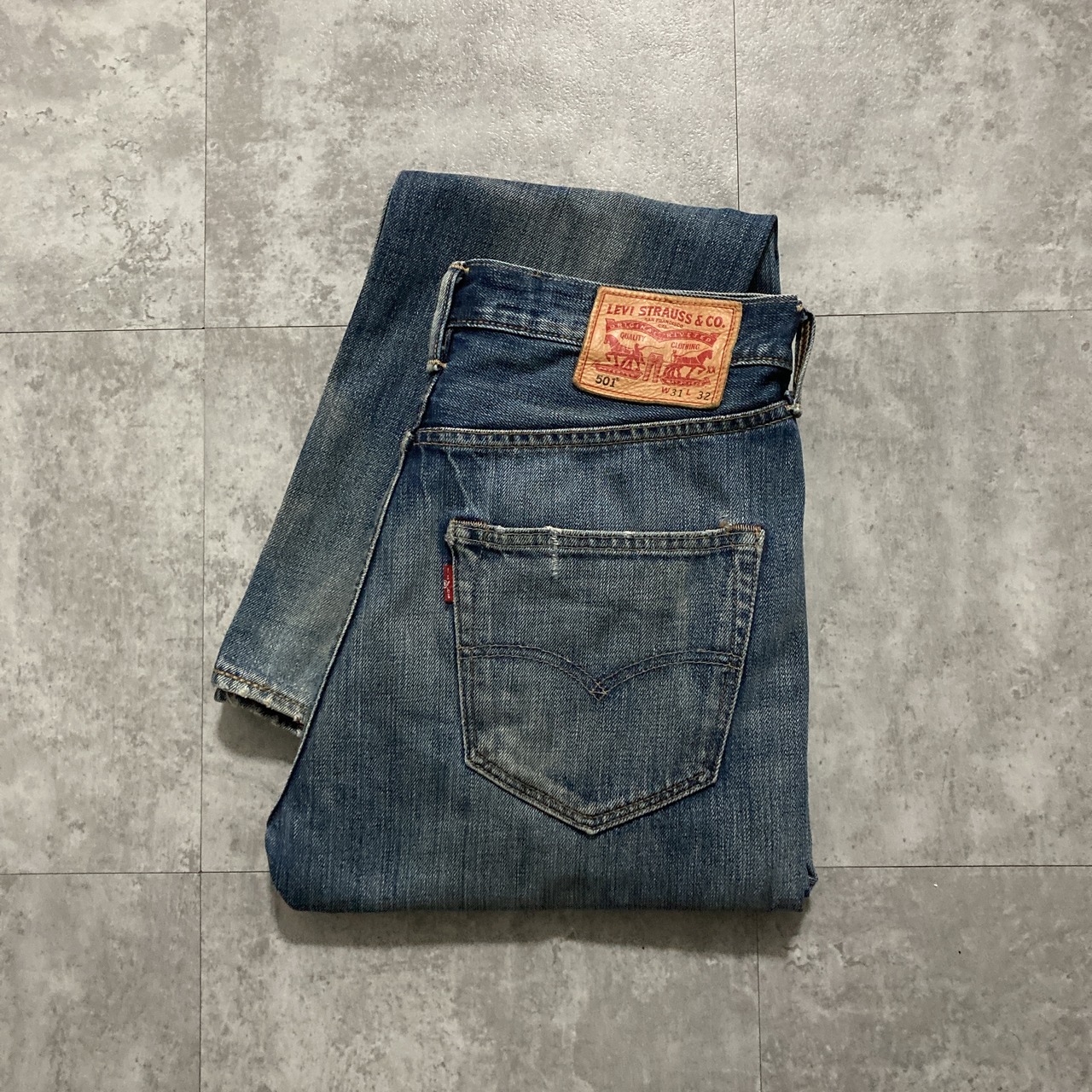 【W31 L32】Levis 501 リーバイス ボタンフライ レザーパッチ 縦落ち ヒゲ ハチノス デニムパンツ ジーンズ
