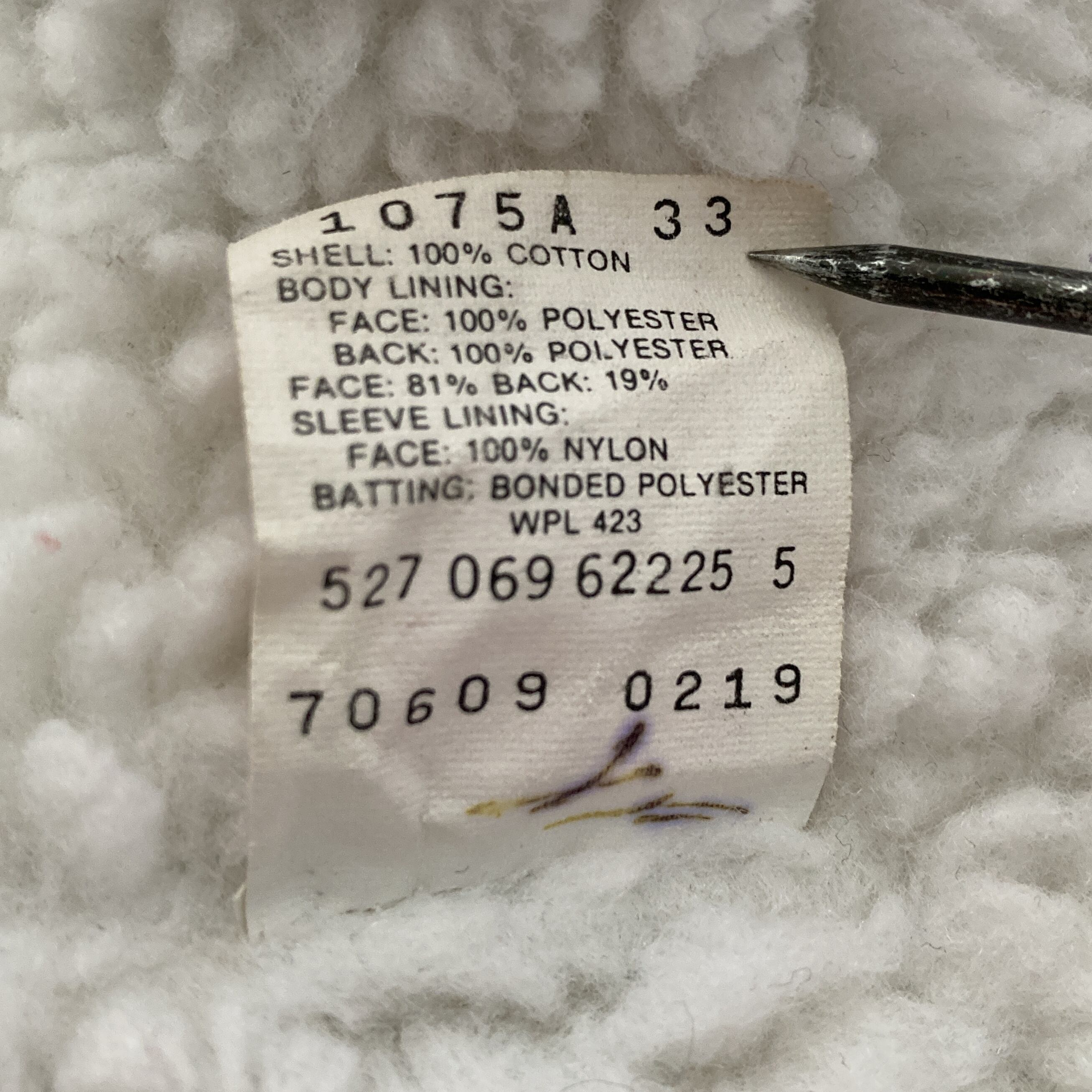 ・裏生地→100%ポリエステル