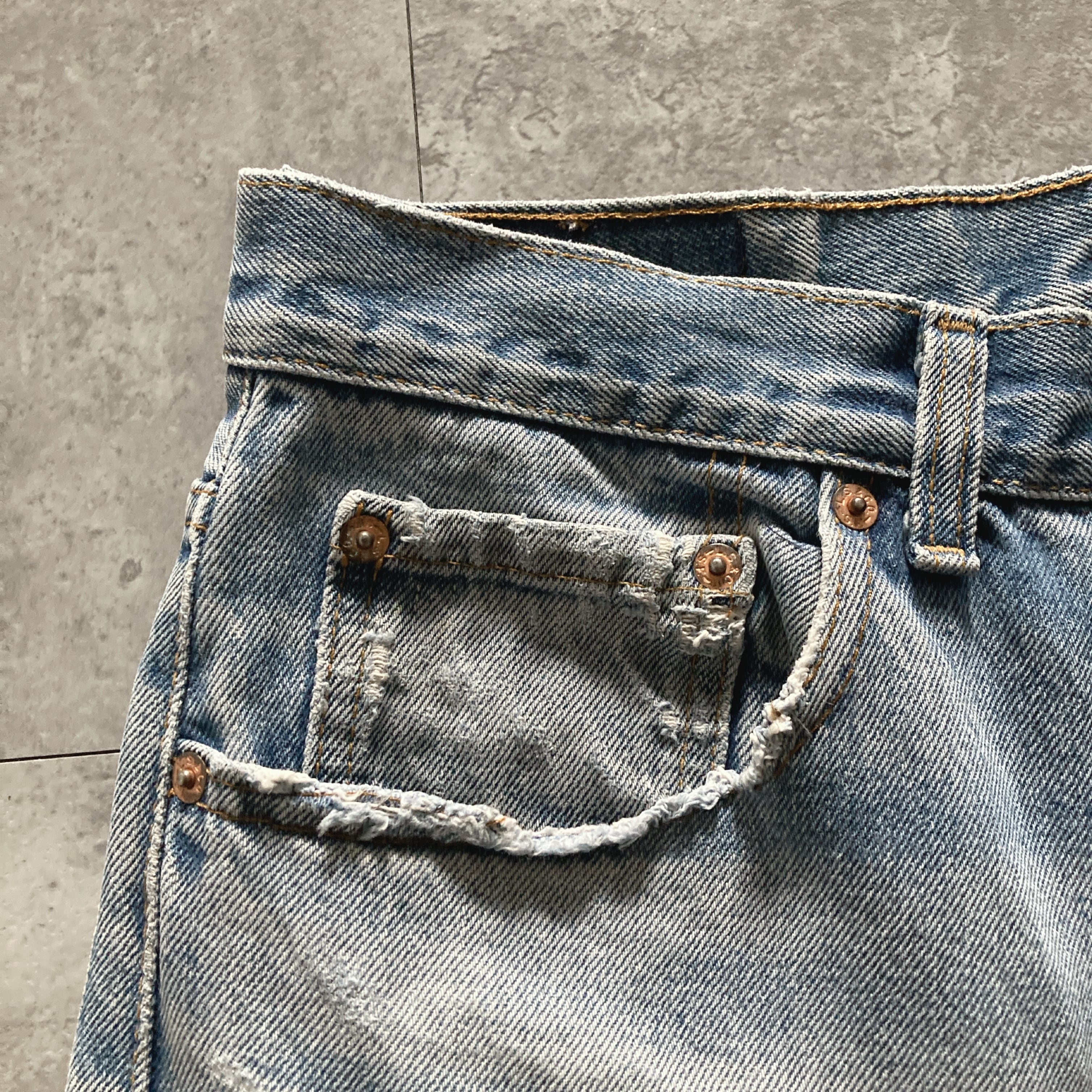 【W32 L32】90‘s US.Levis 501 リーバイス 91年製 90s USA製 アメリカ製 マーフィー工場(546) 裏ボタン刻印546 ボタンフライ ダメージ デニムパンツ ジーンズ | used.Only_Denim