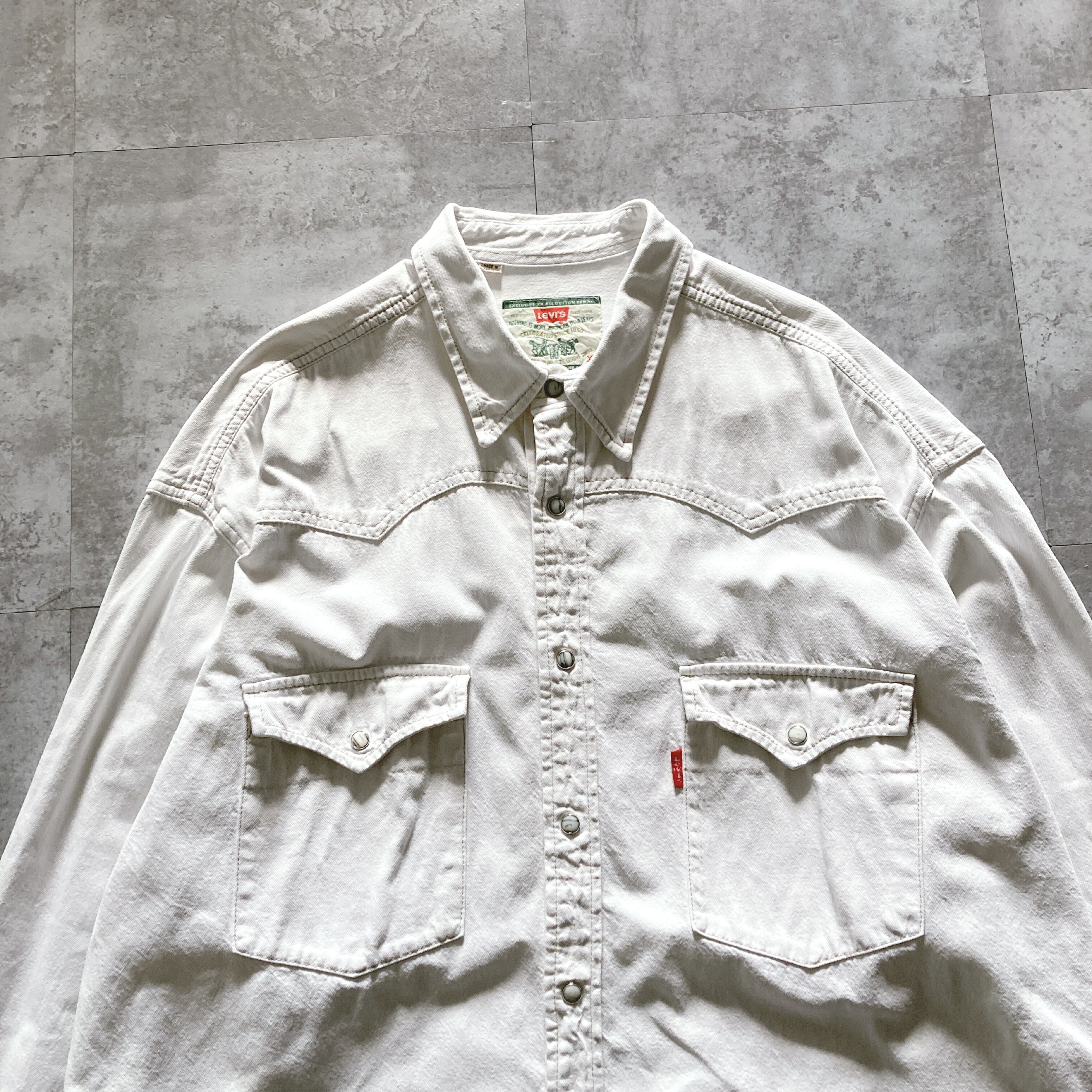 【Size.XL】90‘s Euro Levis ユーロリーバイス 90年製 ポルトガル製 スナップボタン ホワイト デニムシャツ ウエスタンシャツ