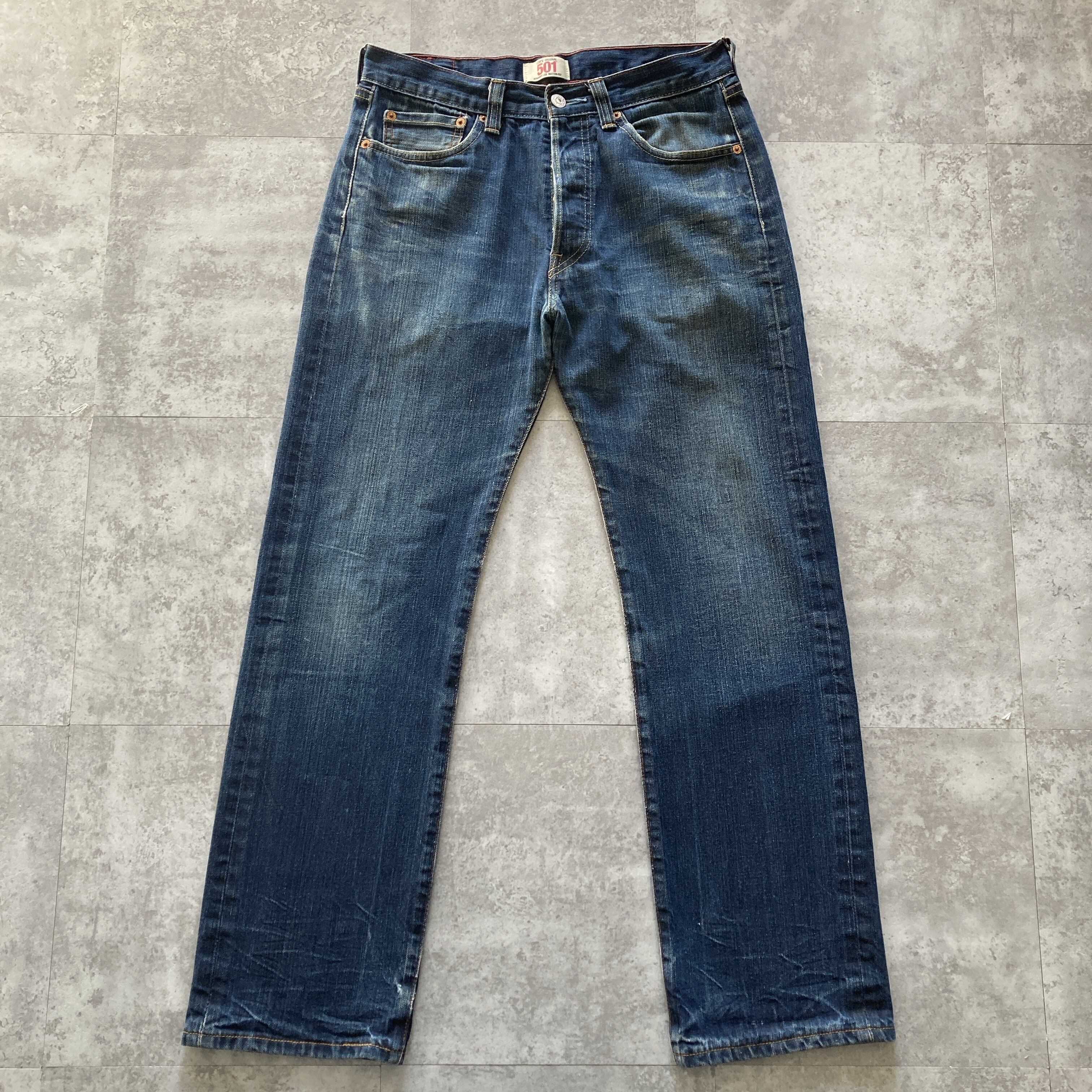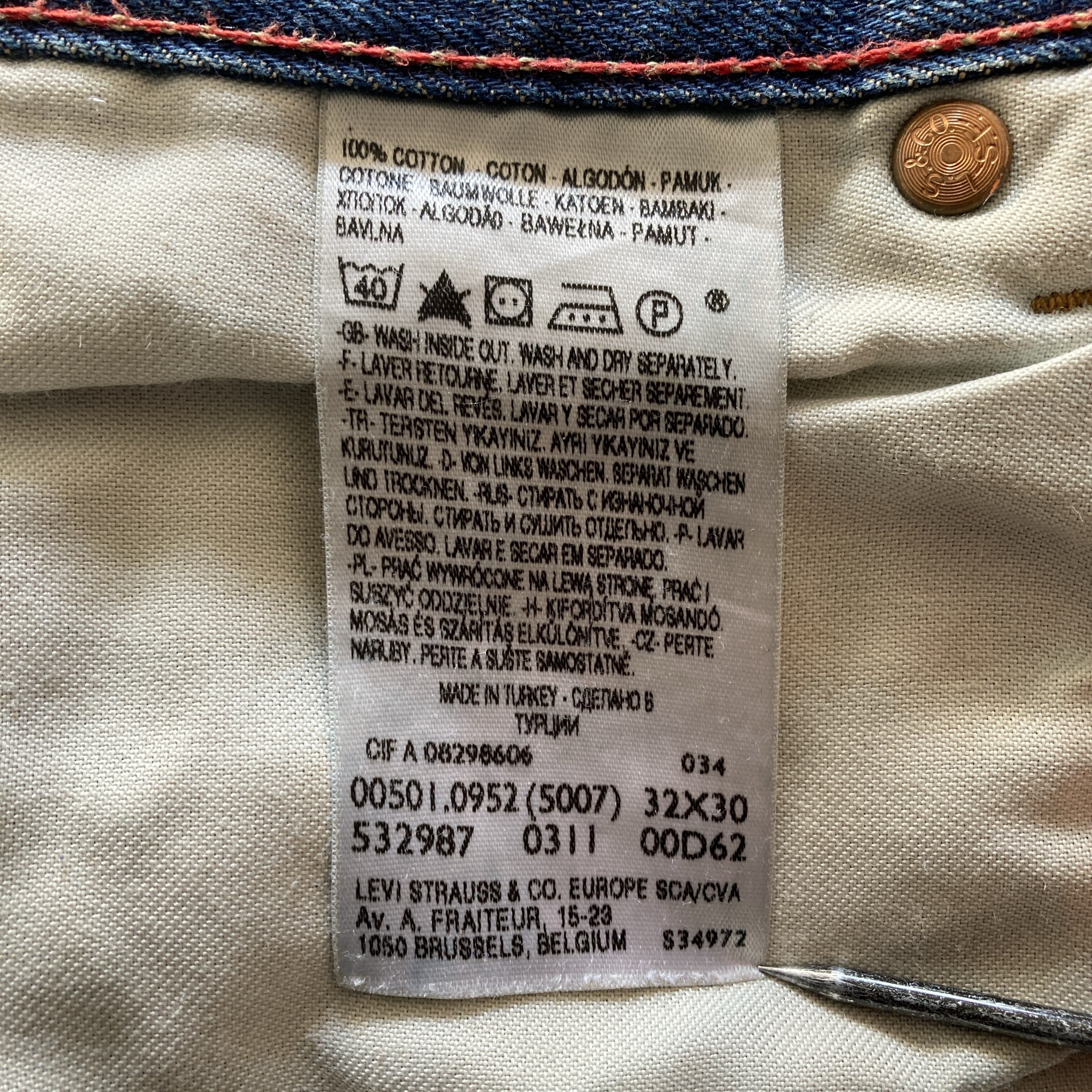 【W32 L30】Euro Levis 501 ユーロリーバイス トルコ製 ボタンフライ レザーパッチ 濃紺 縦落ち ヒゲ ハチノス デニムパンツ ジーンズ