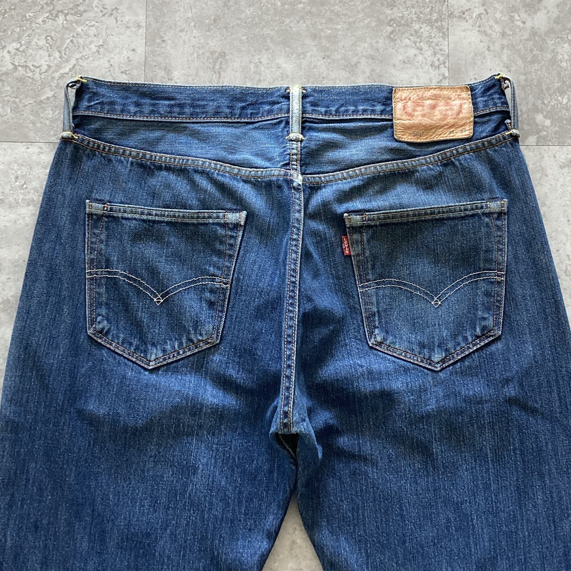 【W34 L34】Euro Levis 501 ユーロリーバイス トルコ製 ボタンフライ レザーパッチ 濃紺 縦落ち ヒゲ デニムパンツ ジーンズ