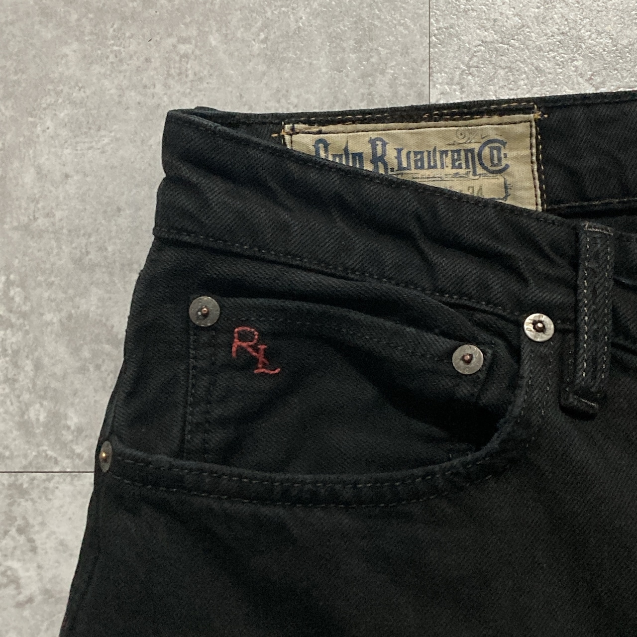 【36×34】POLO RALPH LAUREN ポロラルフローレン ボタンフライ チェーンステッチ ブラック デニムパンツ ジーンズ