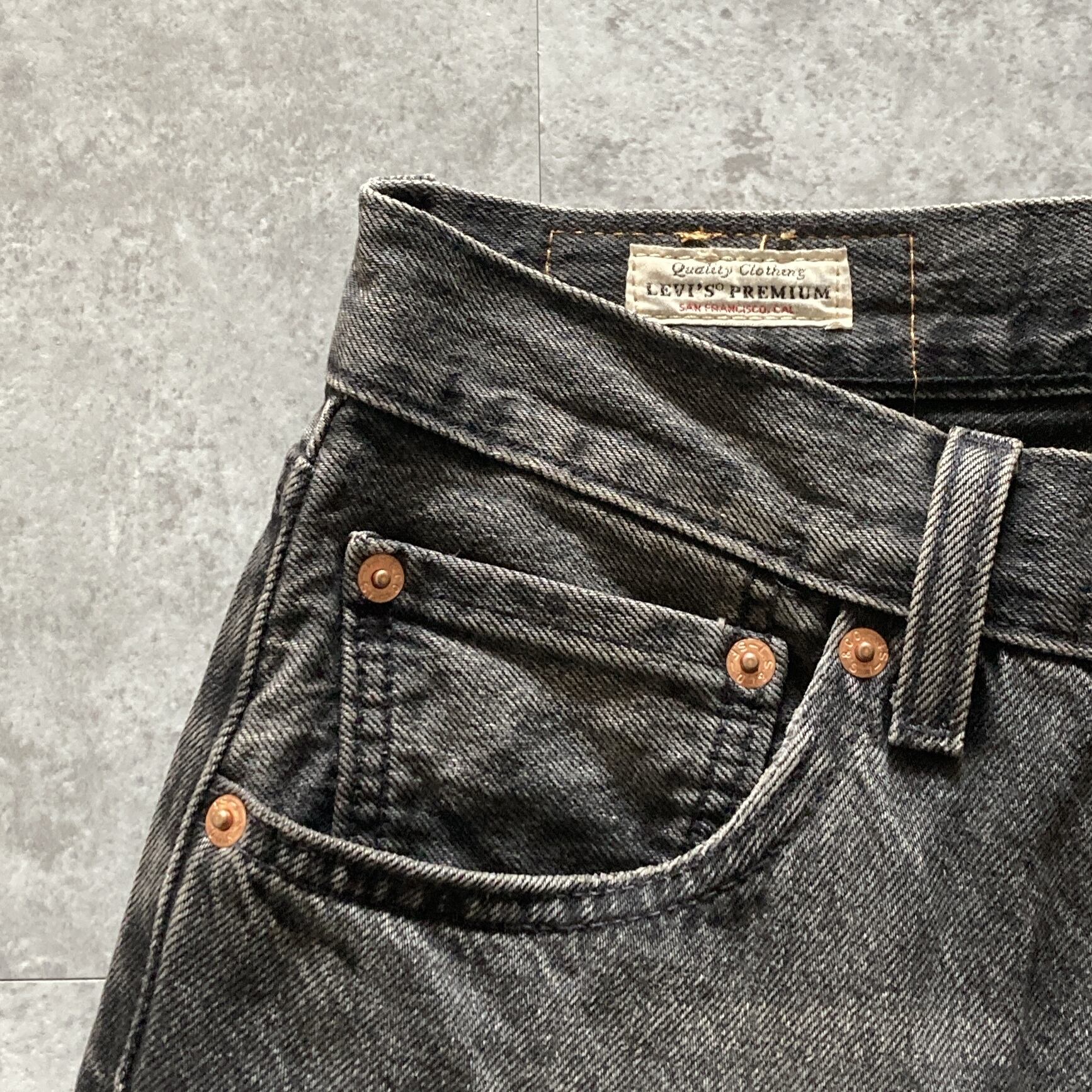 【W31 L32】Levis 501 ’54 PREMIUM リーバイス BIG E レザーパッチ チェーンステッチ ボタンフライ 先染めブラック ダメージ加工 デニムパンツ ジーンズ | used.Only_Denim