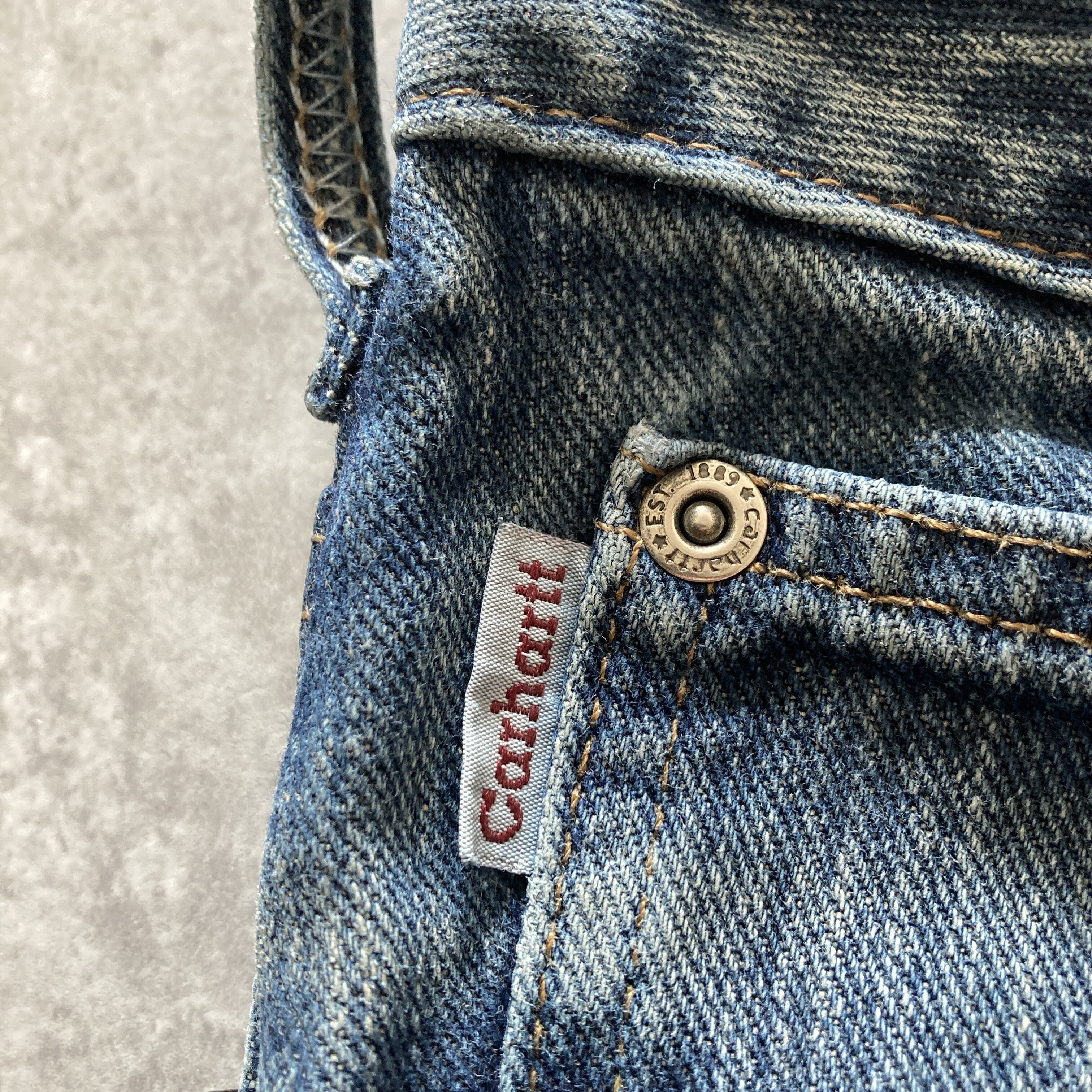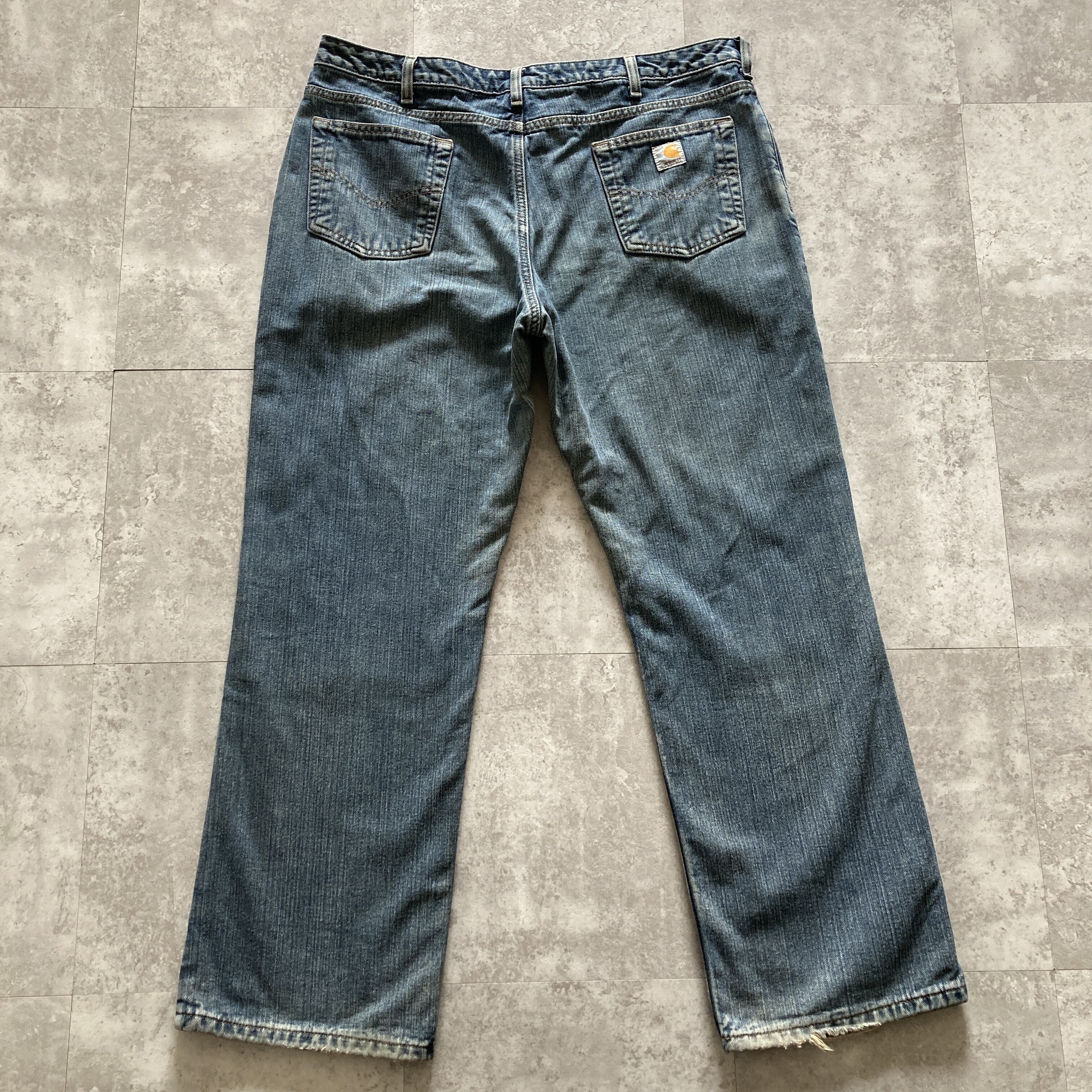 【16×30】carhartt カーハート ジッパーフライ ワンポイント 裏地チェック柄 ワイド ビッグサイズ デニムパンツ ジーンズ