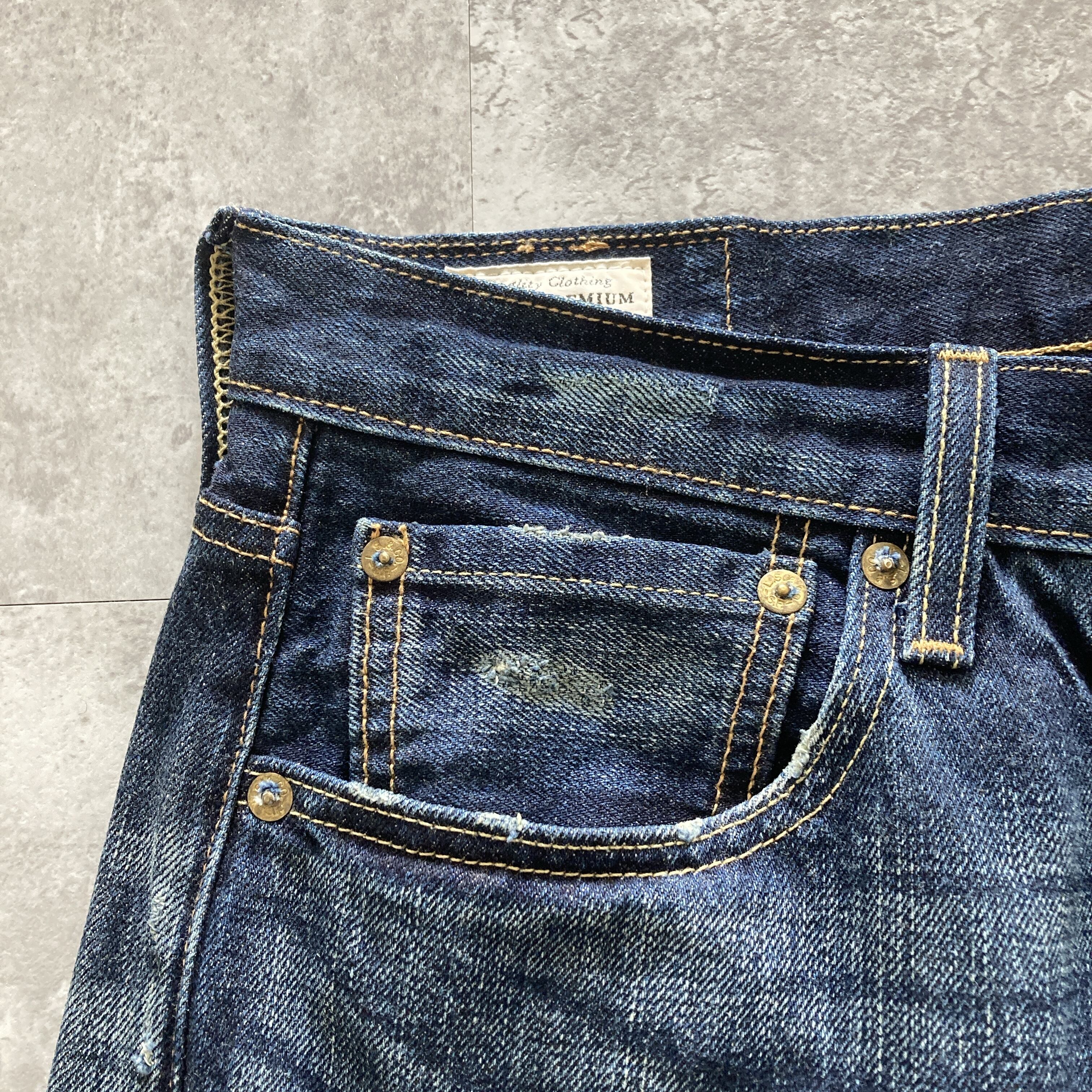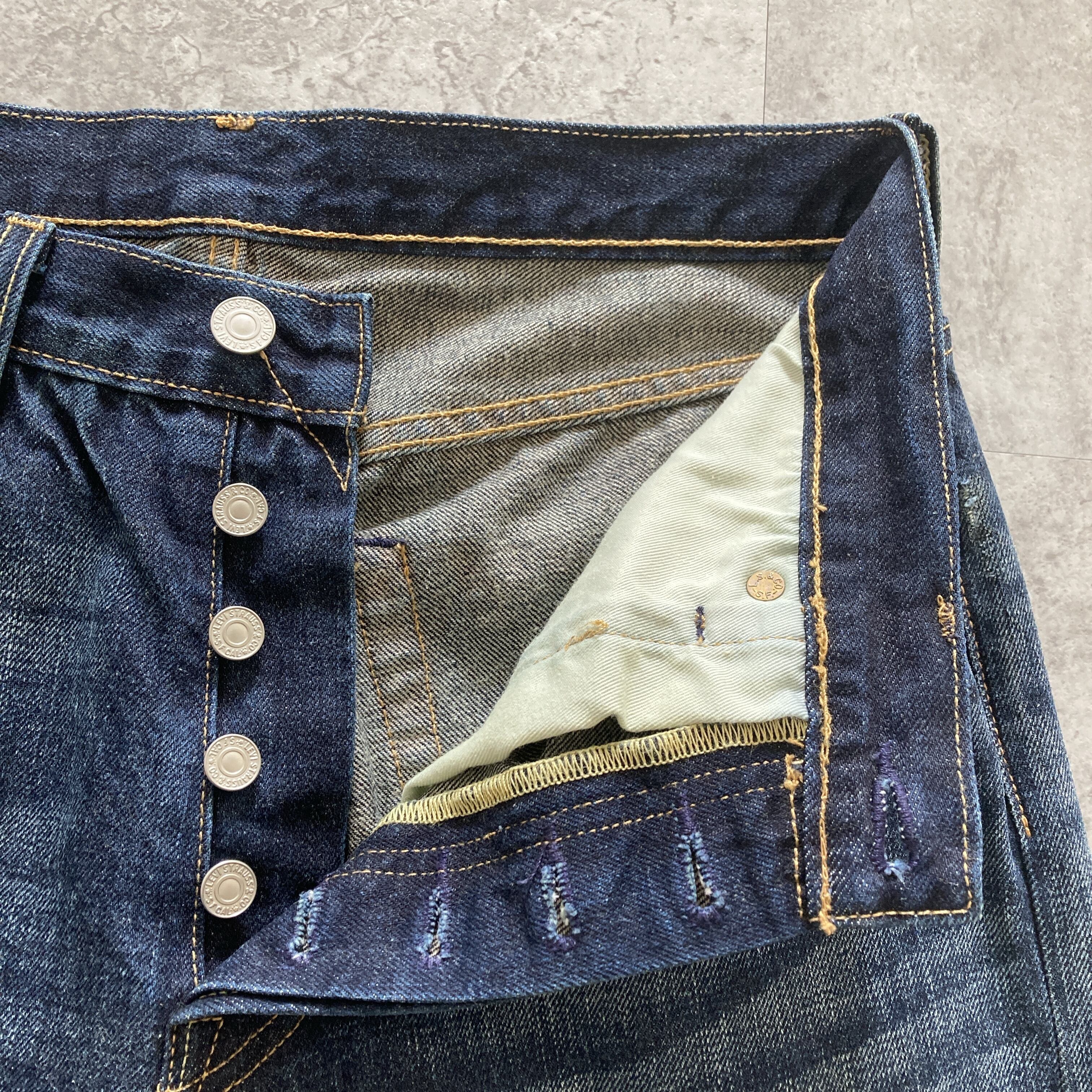 【W31 L32】Levis 501 リーバイス PREMIUM レザーパッチ BIGE チェーンステッチ 濃紺 縦落ち ヒゲ ハチノス ボタンフライ デニムパンツ ジーンズ