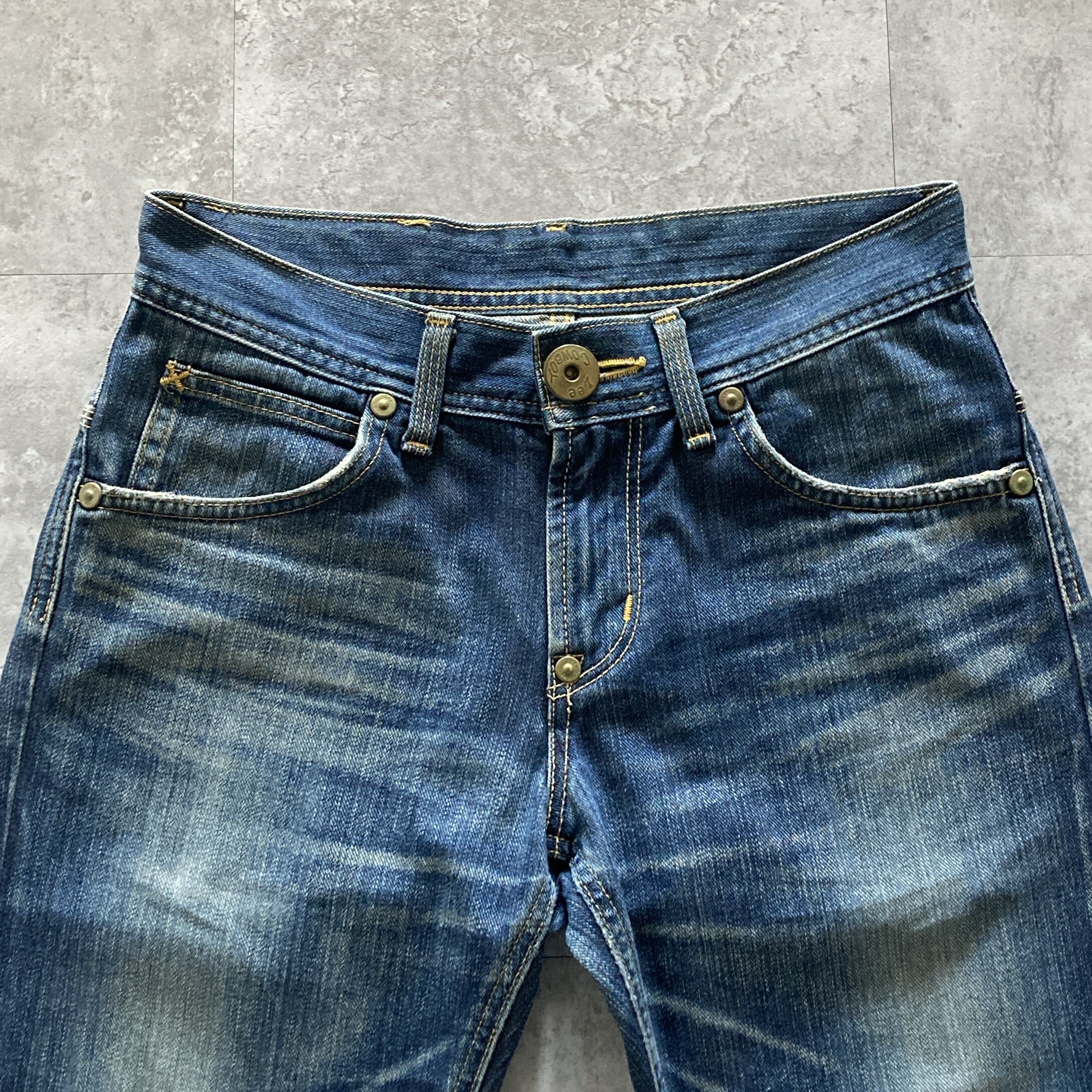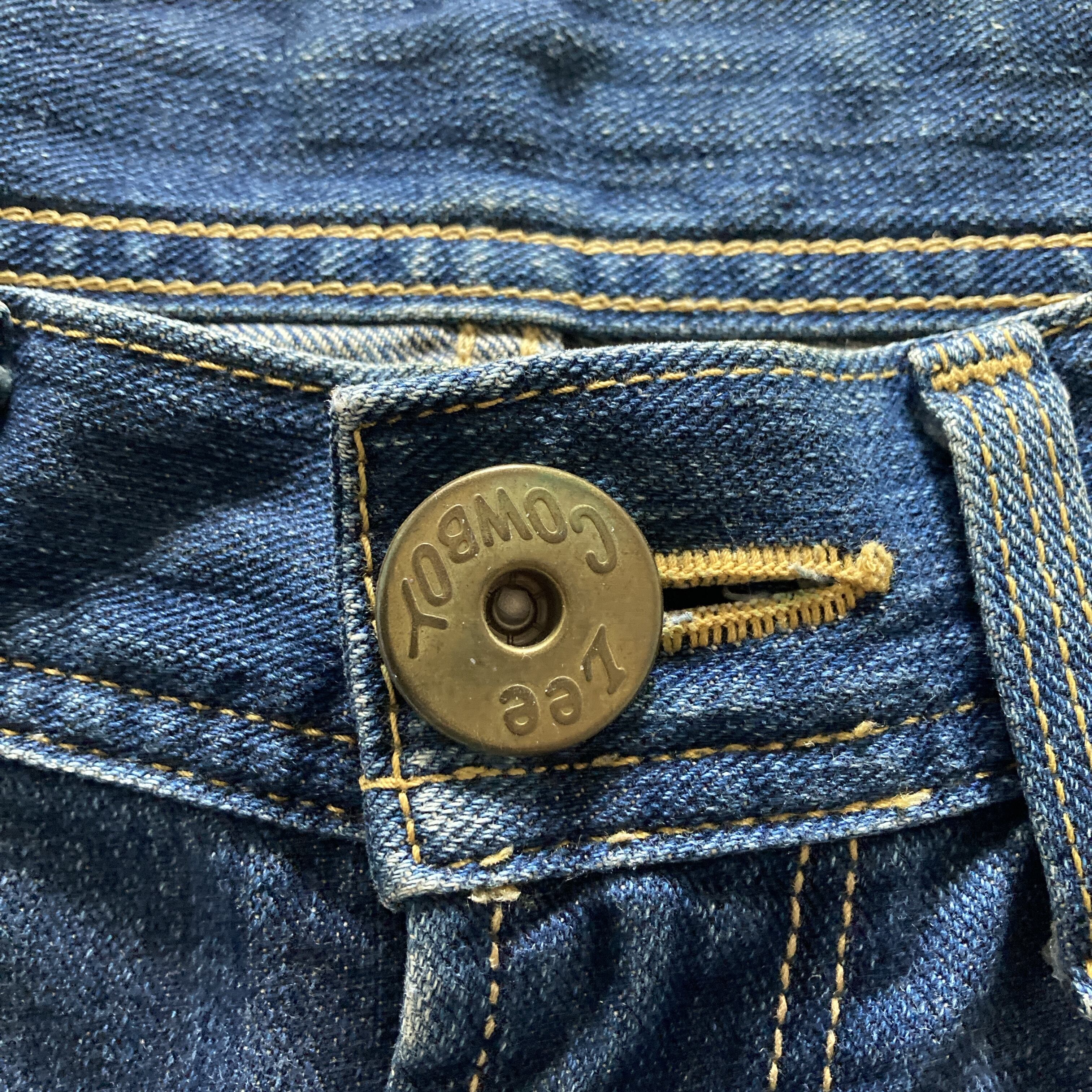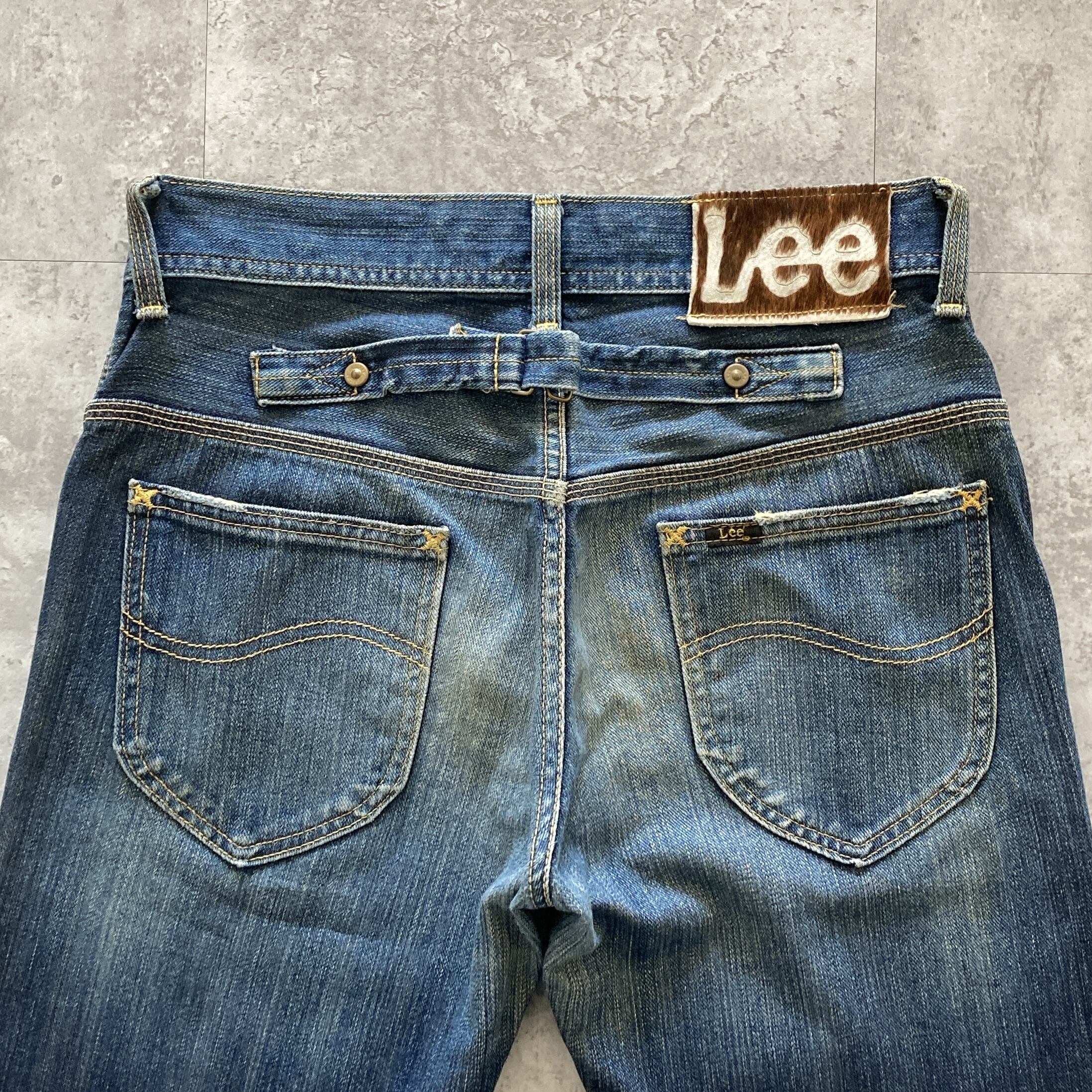【日本製 size28】Lee リー ジップフライ シンチバック レザーパッチ フレア ブーツカット 濃紺 縦落ち ヒゲ ハチノス デニムパンツ ジーンズ