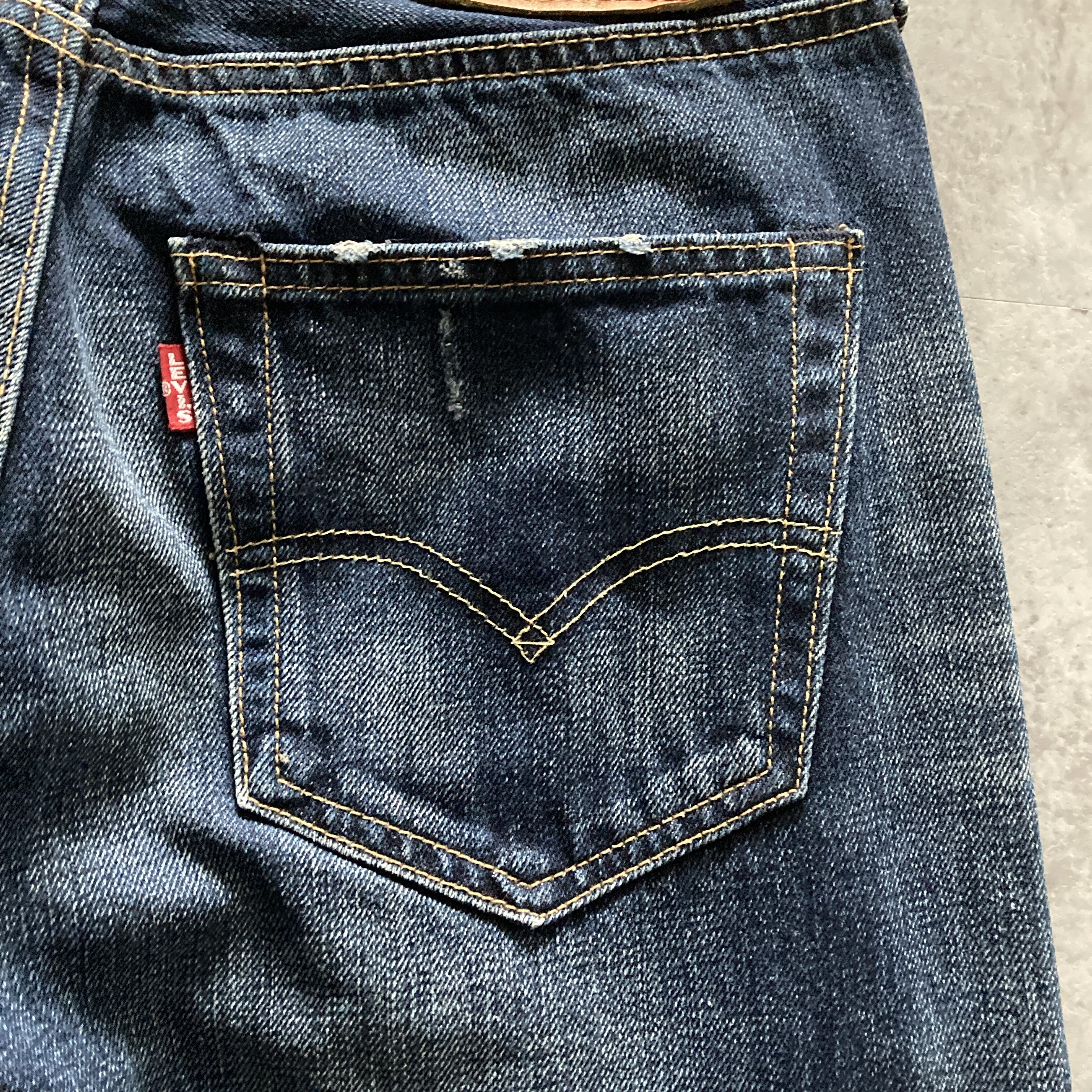 【W29 L32】Levis 501 リーバイス PREMIUM レザーパッチ BIGE チェーンステッチ 濃紺 縦落ち ヒゲ ハチノス ボタンフライ デニムパンツ ジーンズ