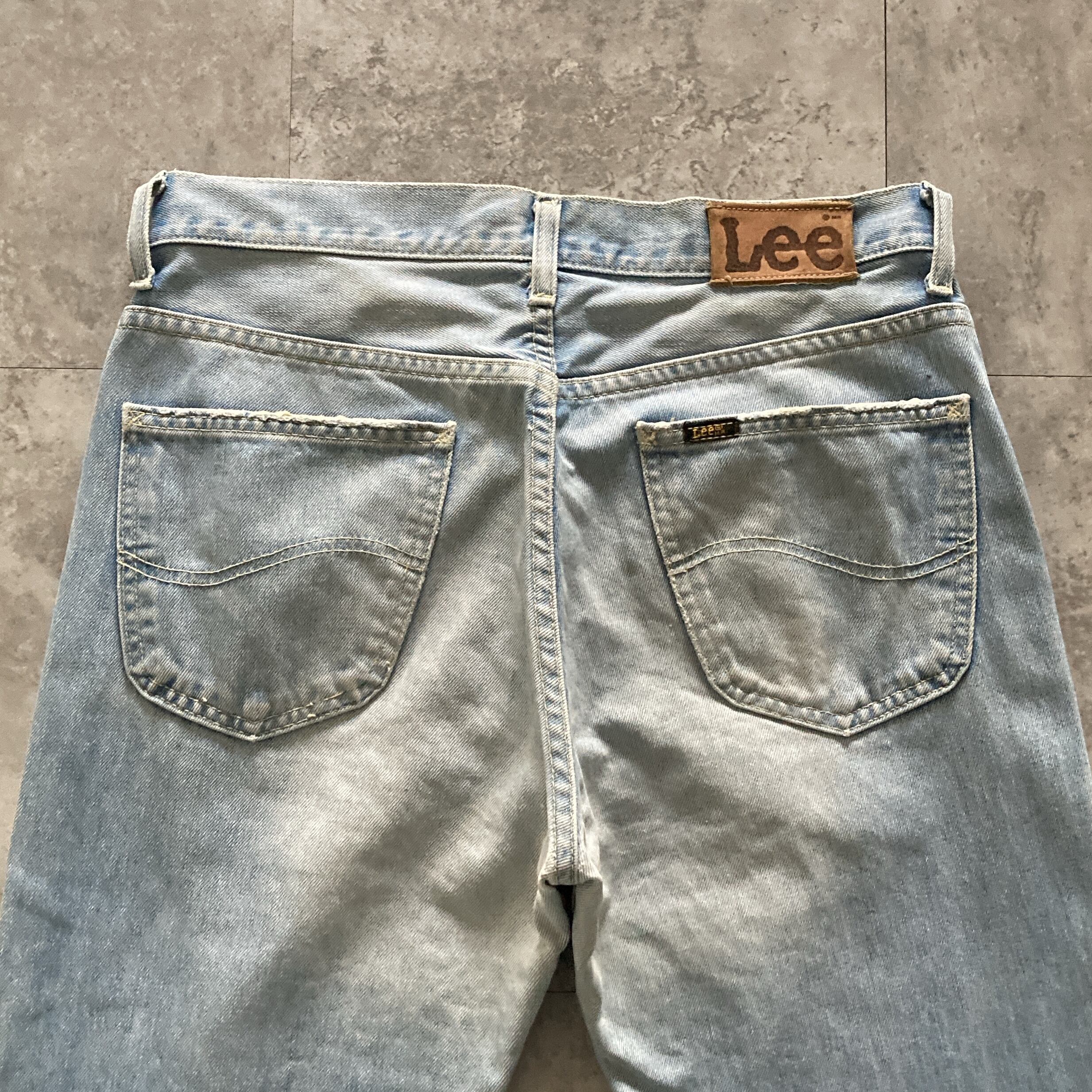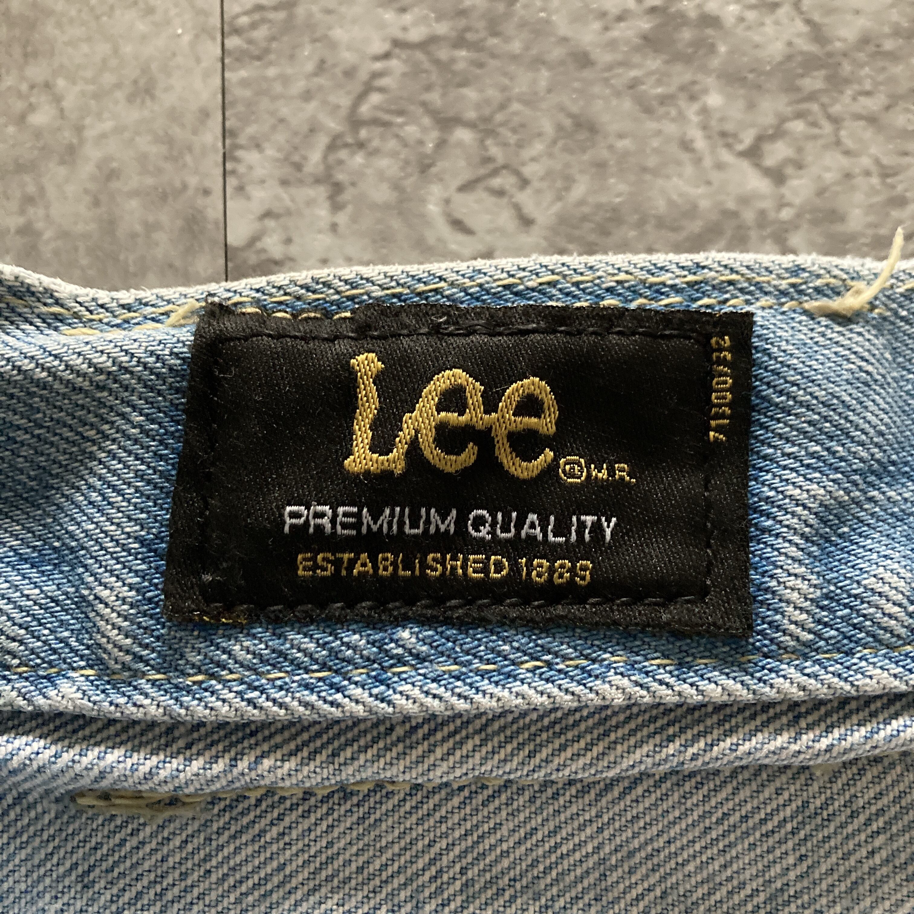 【32-34】Lee リー ボタンフライ レザーパッチ ビッグサイズ フレア ブーツカット 縦落ち ヒゲ デニムパンツ ジーンズ