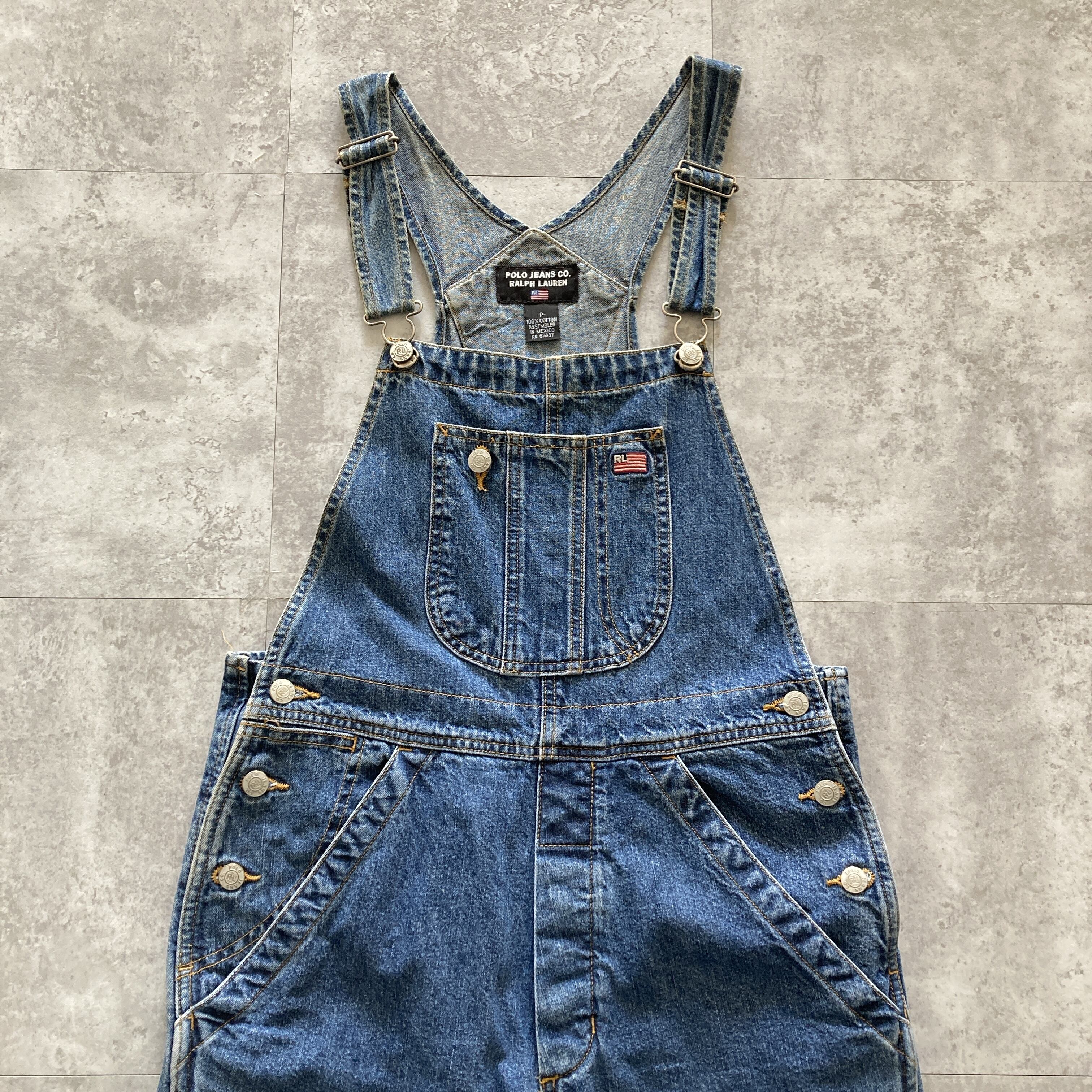 POLO JEANS RALPH LAUREN ポロジーンズラルフローレン ワンポイント ロゴ刺繍 ボタンフライ オーバーオール サロペット
