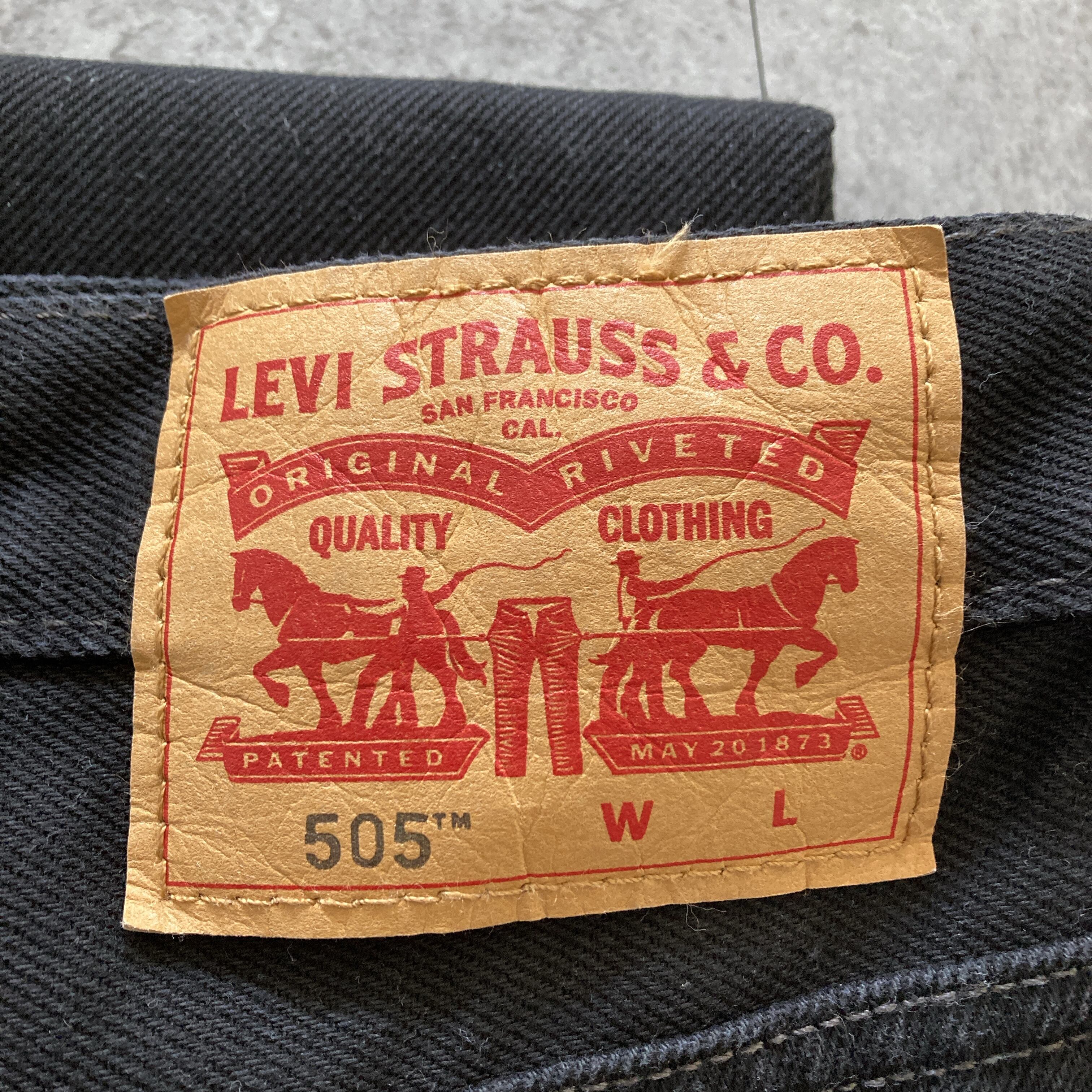【W44 L32】Levis 505 リーバイス ジッパーフライ 先染めブラック 140周年 ビッグサイズ ワイド バギー ブラックデニム ジーンズ